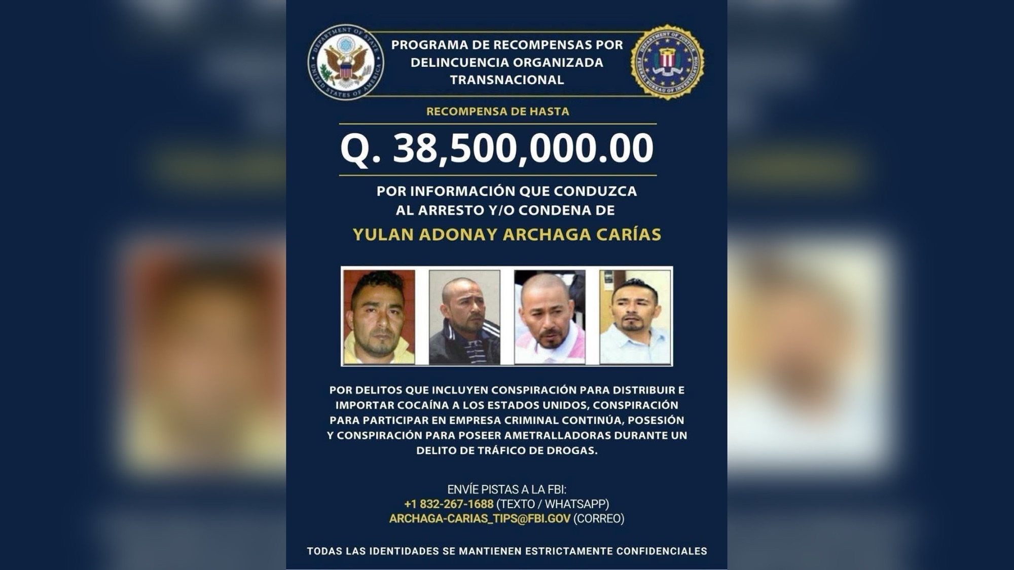 Las autoridades ofrecen una recompensa de hasta Q38,500,000.00 (38 millones) por información que conduzca a su arresto o condena.