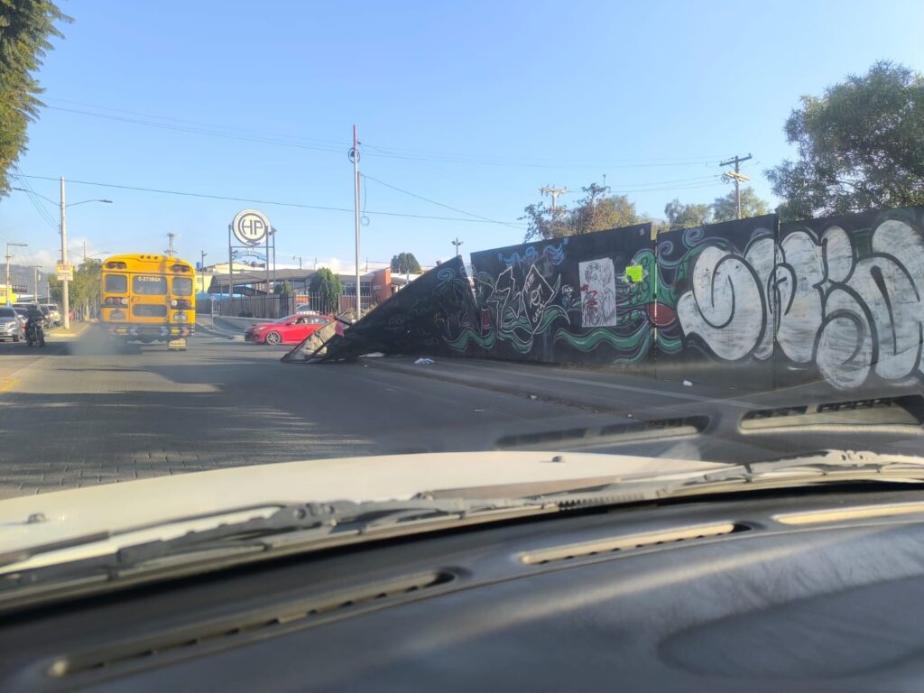 Los fuertes vientos registrados en las últimas horas provocaron que una estructura metálica que cubre una construcción abandonada fuera desplazada violentamente en calle Rodolfo Robles, zona 1 de Quetzaltenango, generando un serio riesgo para peatones y vehículos que transitan por el sector.