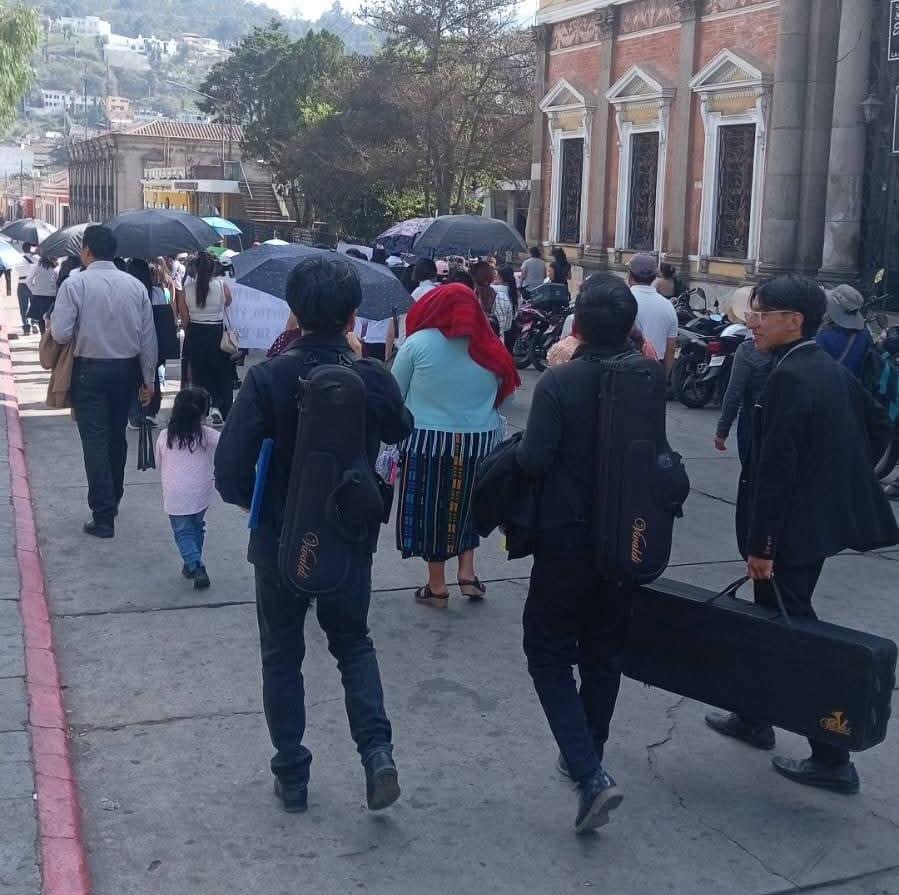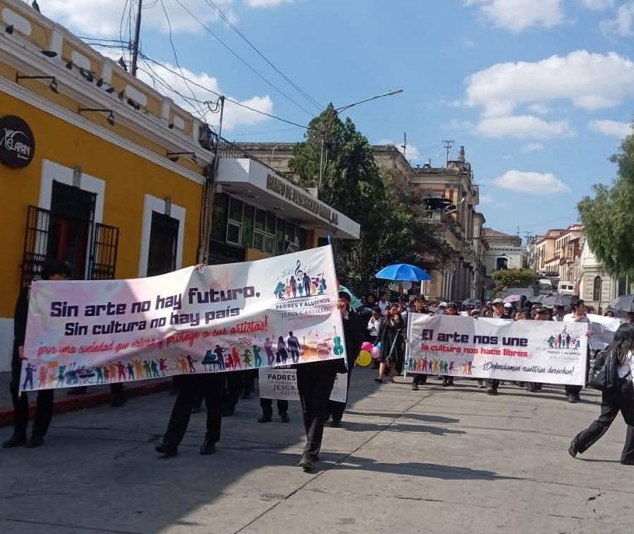 Un grupo de estudiantes del Conversatorio “Jesús Castillo” realizó una manifestación en el frontispicio de la Municipalidad de Quetzaltenango, luego de que se les negara el uso del Teatro Municipal para llevar a cabo un evento cultural.