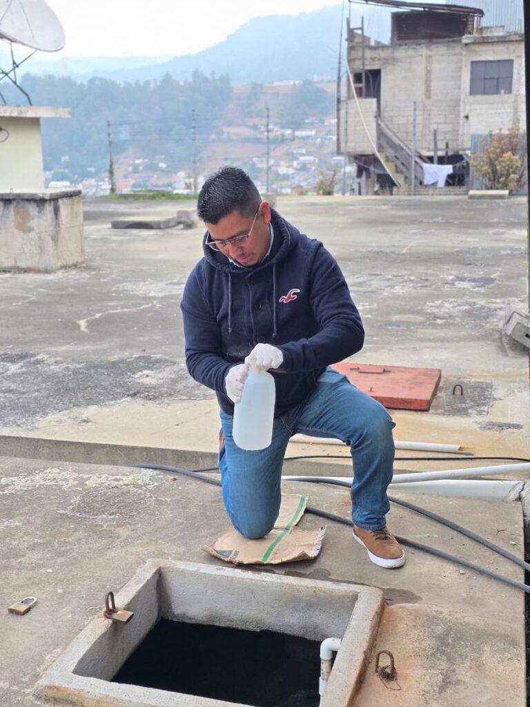 Este miércoles, personal del Departamento de Saneamiento Ambiental del Centro de Salud, en conjunto con la Oficina Municipal de Agua y Saneamiento de la Municipalidad de Totonicapán, evalúan calidad del agua.