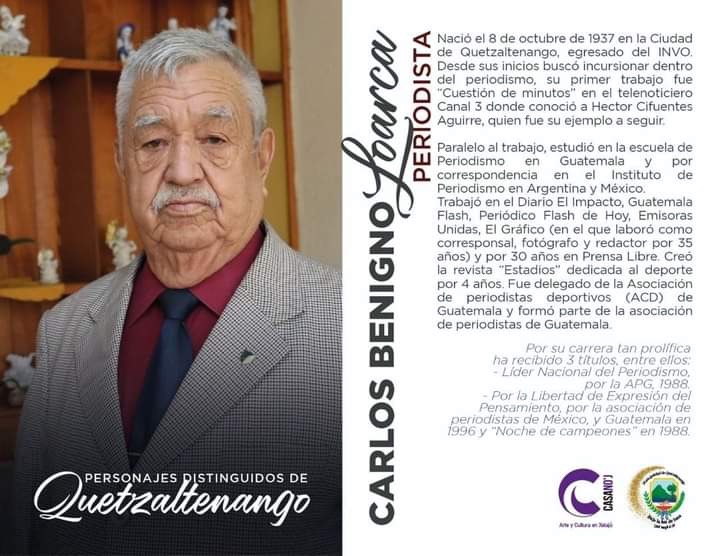 La noche de este lunes se confirmó el fallecimiento del periodista quetzalteco Carlos Benigno Loarca, noticia que ha generado muestras de pesar dentro del gremio de la comunicación en Quetzaltenango.