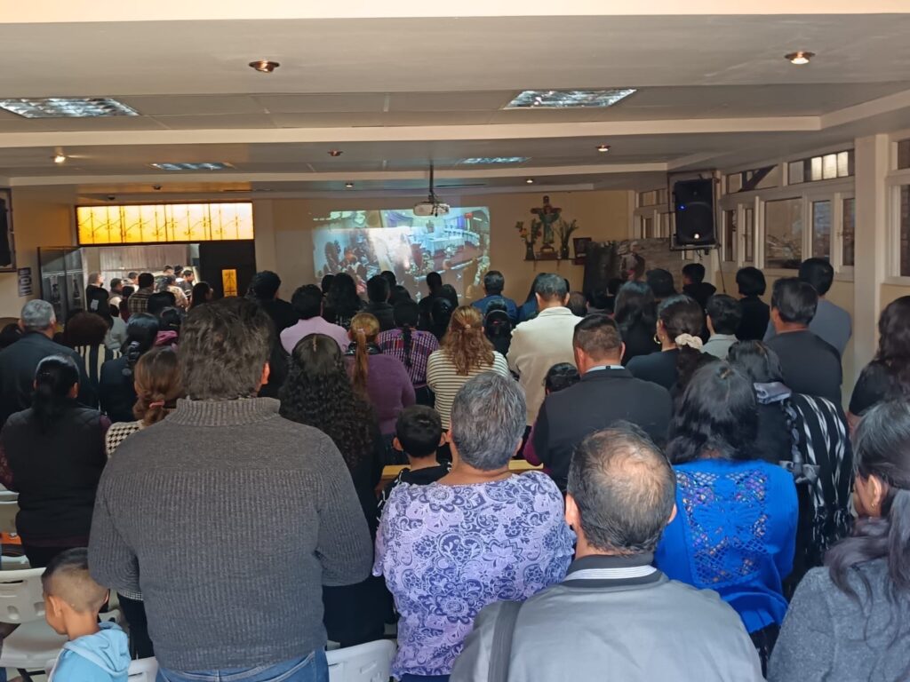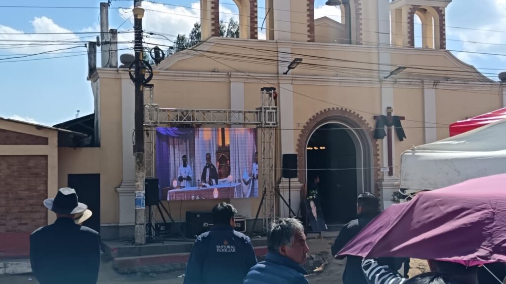 Debido a la gran afluencia de personas, fue instalada una pantalla en el exterior del templo para que la población que no logró ingresar pueda seguir la celebración litúrgica.