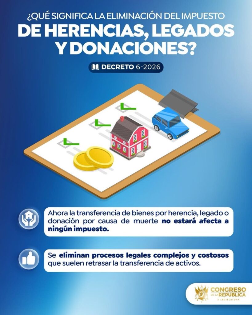 La publicación del Decreto 06-2026 marca el fin de un tributo vigente por décadas. La reforma busca agilizar la regularización de propiedades y aliviar la carga económica de las familias tras el fallecimiento de sus seres queridos.