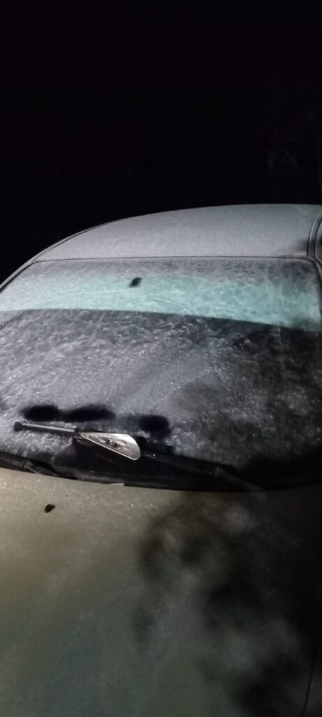 El frío extremo se hizo evidente desde las primeras horas del día, afectando principalmente áreas abiertas y zonas rurales, donde la helada cubrió cultivos, caminos y automóviles estacionados a la intemperie.