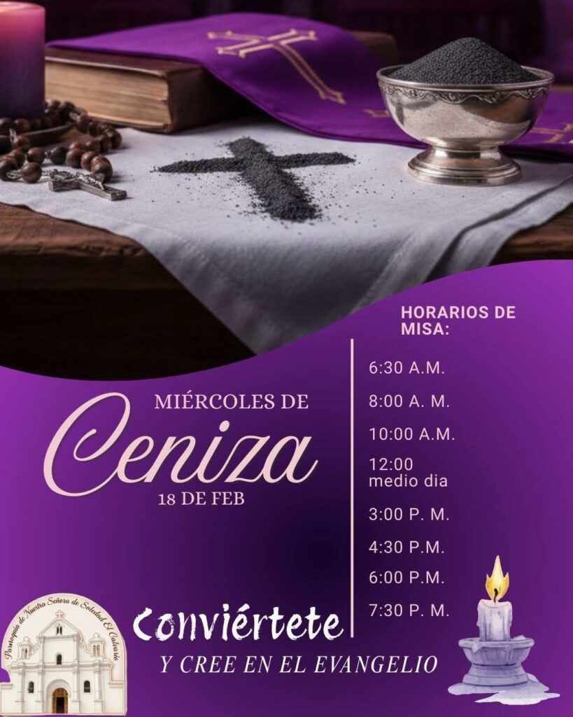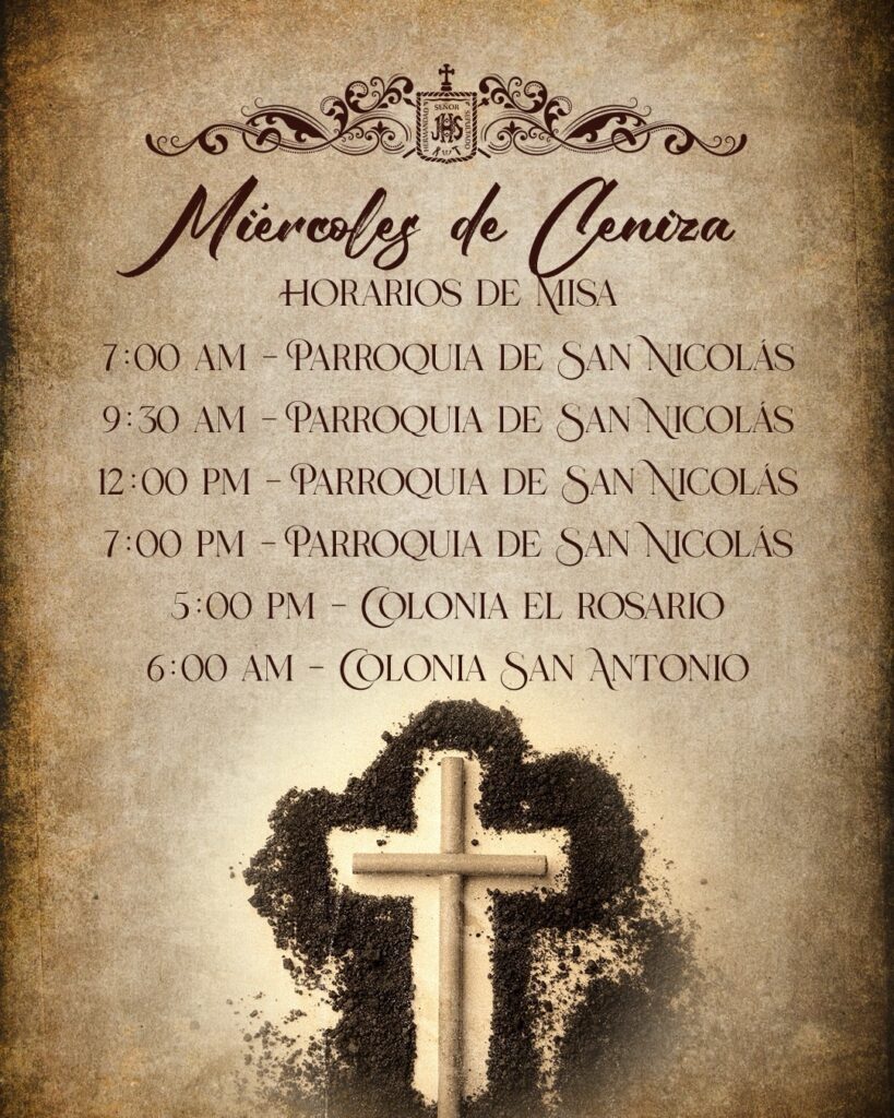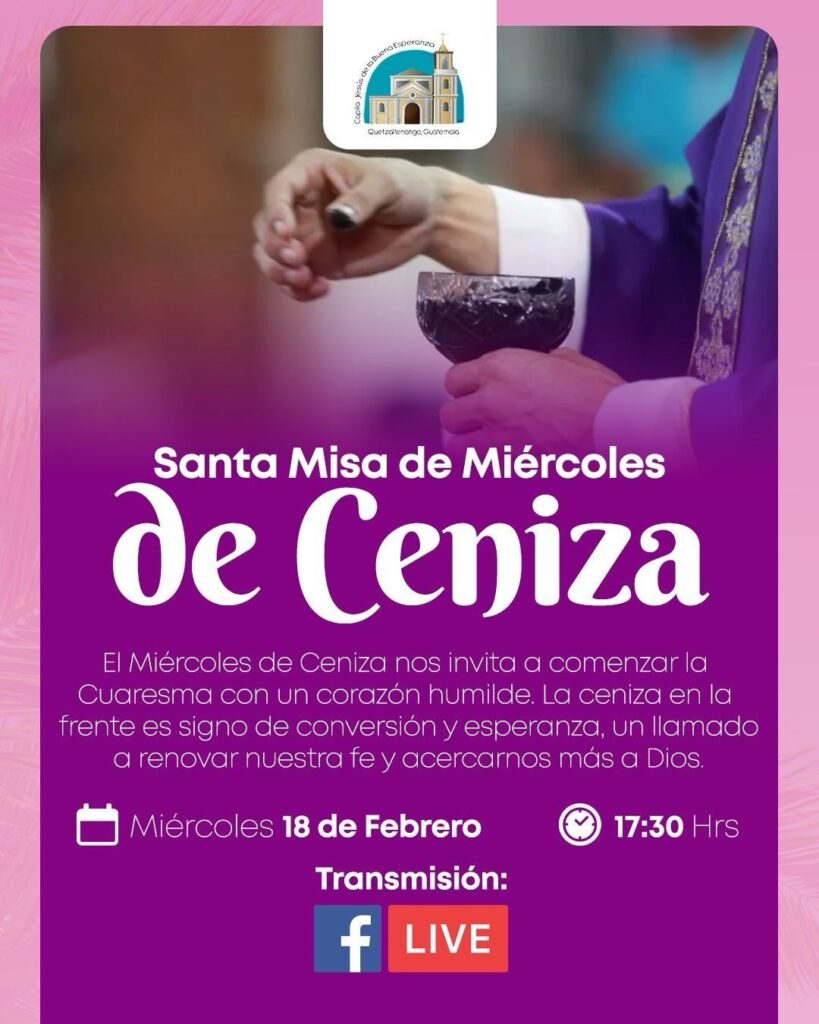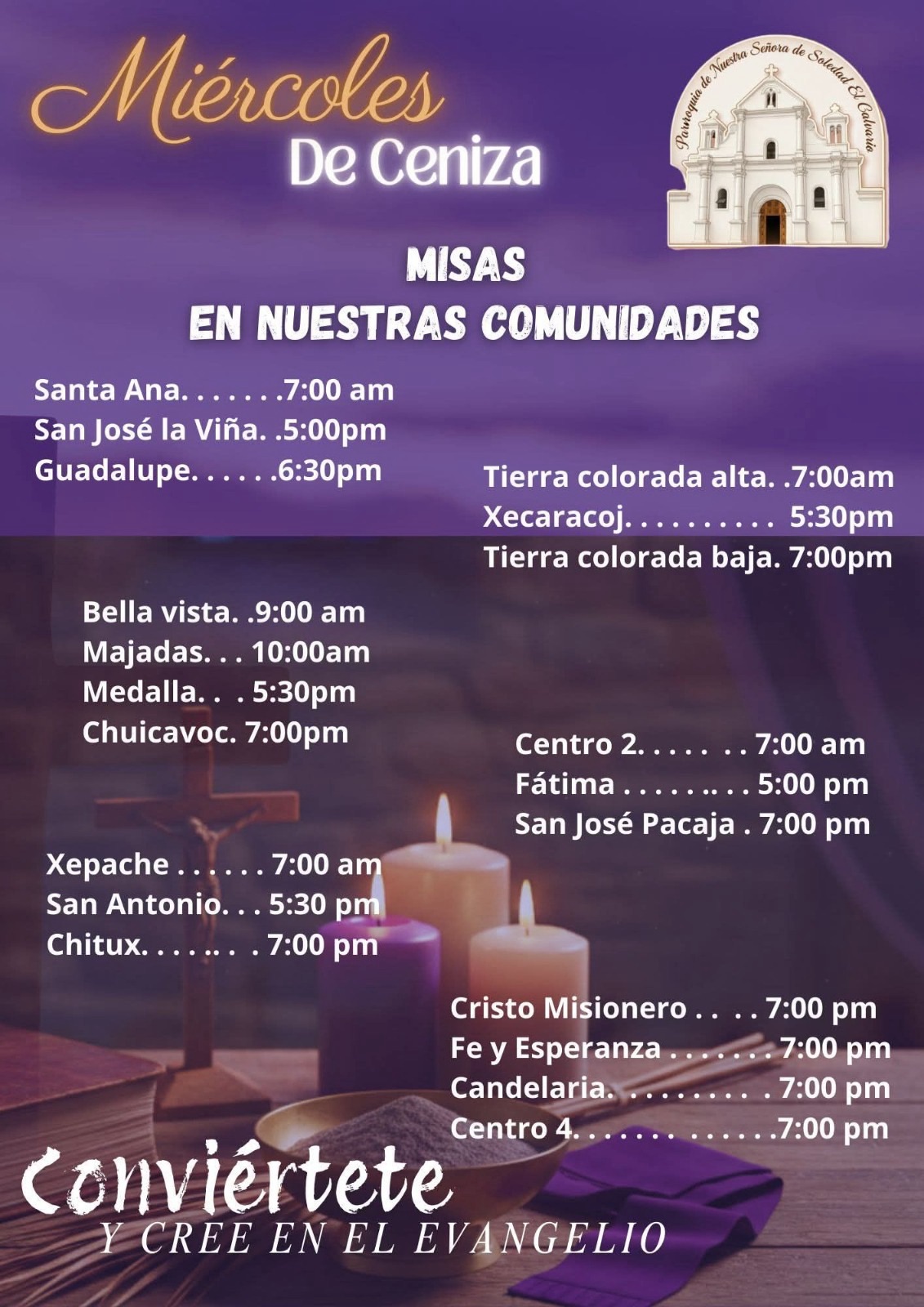Se informa a la feligresía católica de Quetzaltenango sobre los horarios y parroquias en los que se celebrará la Santa Eucaristía con imposición de Ceniza, con motivo del Miércoles de Ceniza, inicio del tiempo litúrgico de Cuaresma.