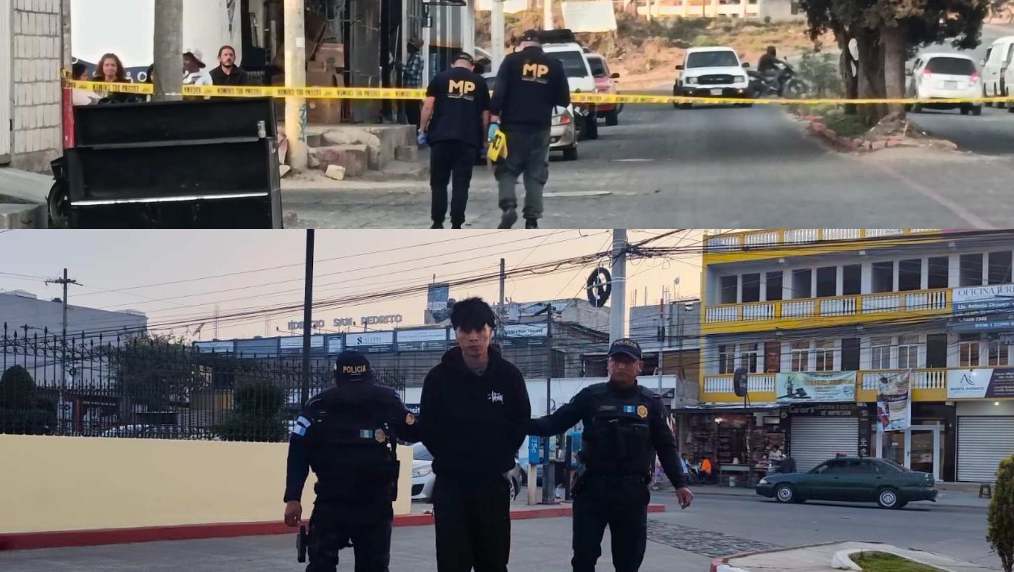 El Ministerio Público y la Policía Nacional Civil procesaron la escena del crimen, donde se confirmó el deceso de una persona y las heridas de otra, quien fue trasladada a un centro asistencial para recibir atención de emergencia: