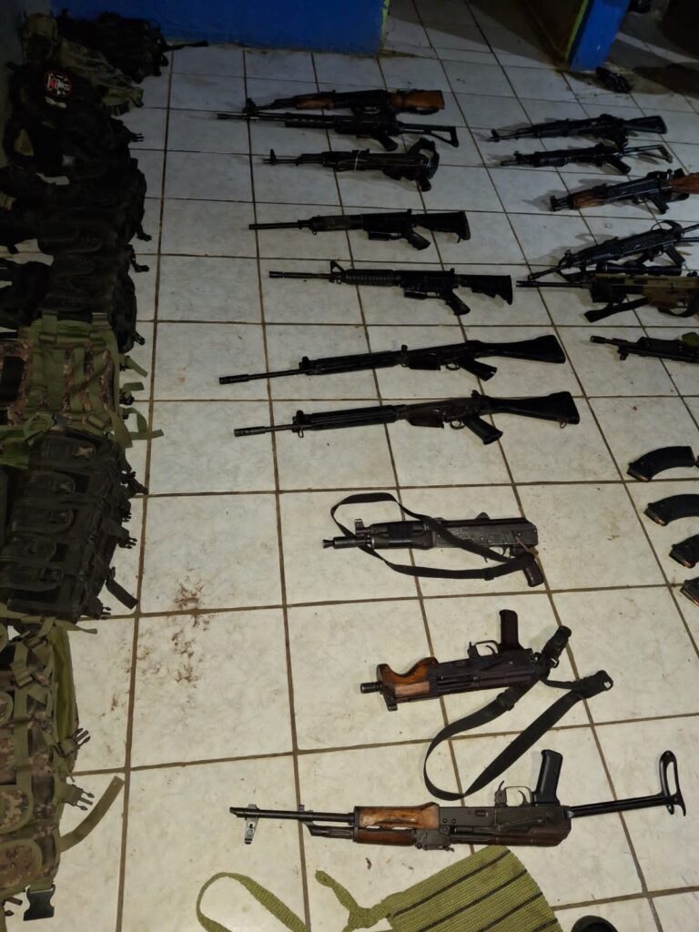 En un operativo conjunto la Policía Nacional Civil (PNC) de Guatemala, a través de la DIP y el Ejército de Guatemala, decomisaron un arsenal y capturaron a cinco personas en la aldea Las Espuelas, La Democracia, Huehuetenango.