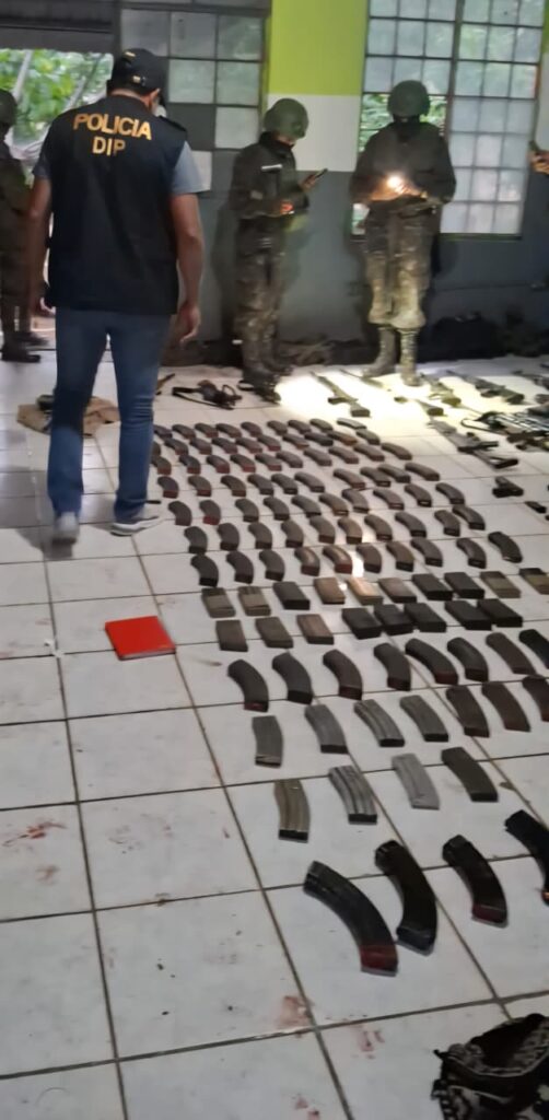 Entre lo incautado figuran 16 fusiles, más de 100 tolvas, pistolas, chalecos blindados, celulares y motocicletas. Los detenidos, de entre 16 y 39 años, fueron puestos a disposición de la justicia, mientras el Ministerio Público (MP) de Guatemala procesa la escena.
