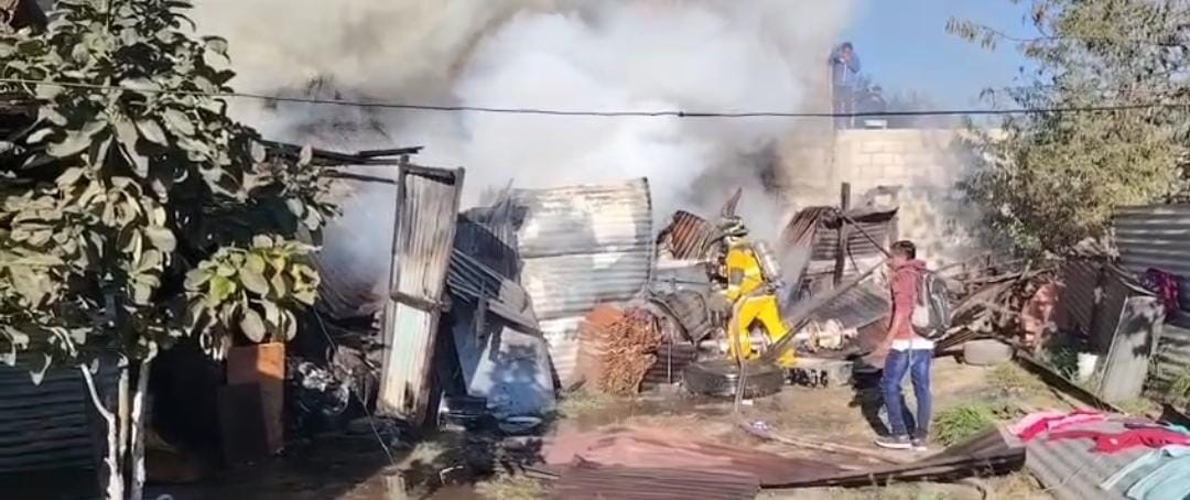 A su llegada, los socorristas constataron que el fuego había alcanzado una vivienda construida de lámina y madera, la cual estaba siendo consumida por las llamas. Para controlar y sofocar el siniestro, el personal utilizó más de 2 mil 200 galones de agua.