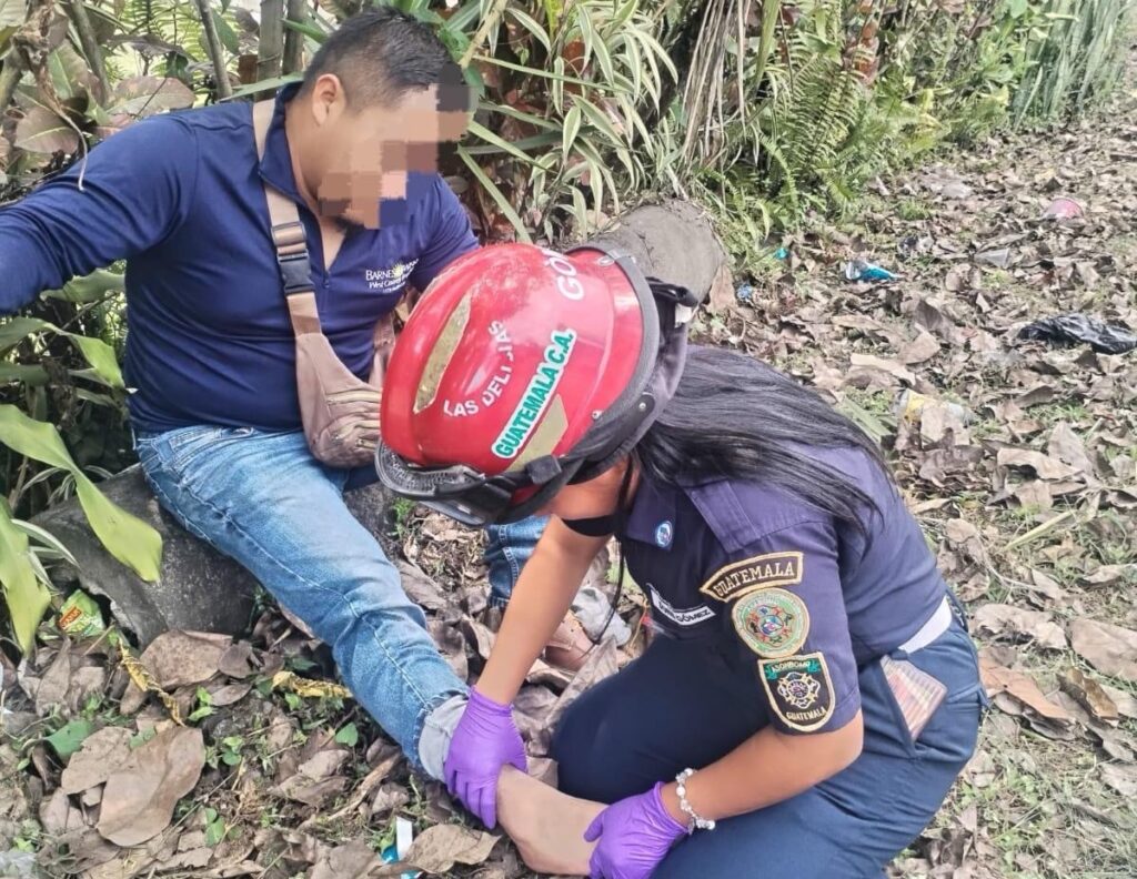 Al llegar al lugar a bordo de la unidad AD-141, los socorristas brindaron atención prehospitalaria a Josué Dimitrio Vicente Orozco, de 31 años, originario de San Francisco Zapotitlán, Mazatenango, quien presentaba posible fractura de tibia y peroné, así como golpes en distintas partes del cuerpo.