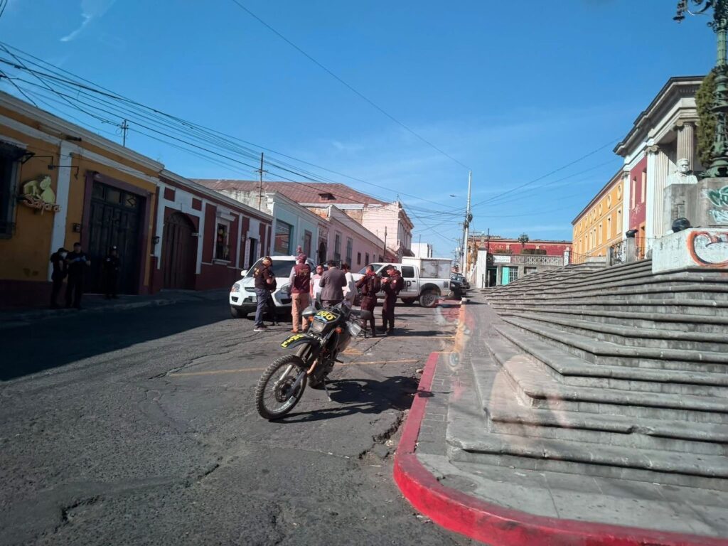 La tarde de este martes, en la 14 avenida “A” y 1ª calle de la zona 1 de Quetzaltenango, personal del Ministerio Público (MP) y agentes de la Policía Nacional Civil (PNC) desarrollan una diligencia en el sector.