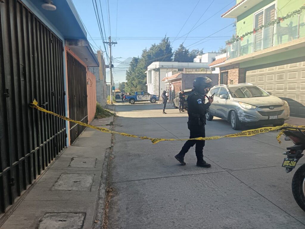 Agentes de la PNC resguardan la escena, mientras acuden fiscales del Ministerio Público (MP) para investigar el caso.