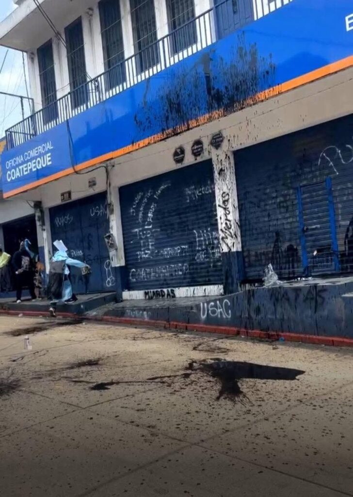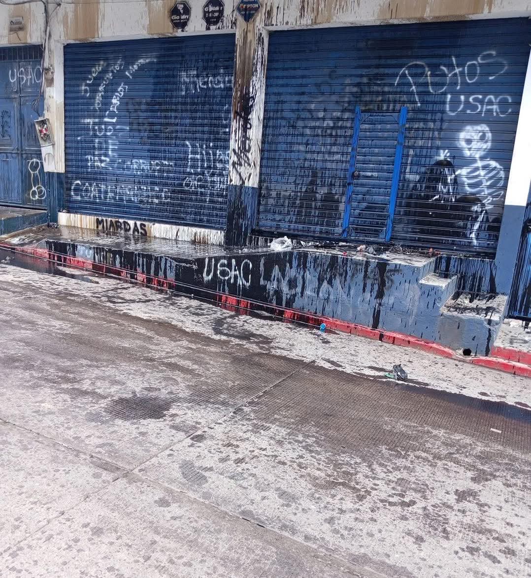 En el marco de las actividades de la Huelga de Todos los Dolores, el paso del Desfile Bufo por las calles de Coatepeque dejó huellas de protesta en la propiedad privada. Supuestos estudiantes de la sede local de la Universidad de San Carlos de Guatemala (USAC) realizaron diversas pintas en las oficinas administrativas de la empresa Energuate.