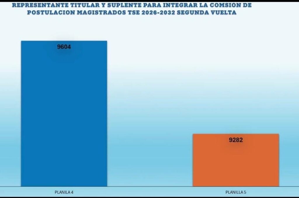 De acuerdo con los resultados finales, la planilla 4 obtuvo 9 mil 604 votos, superando a la planilla 5, que alcanzó 9 mil 282 votos, en una jornada que reflejó una alta participación de los profesionales del derecho agremiados al colegio.