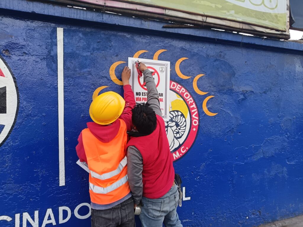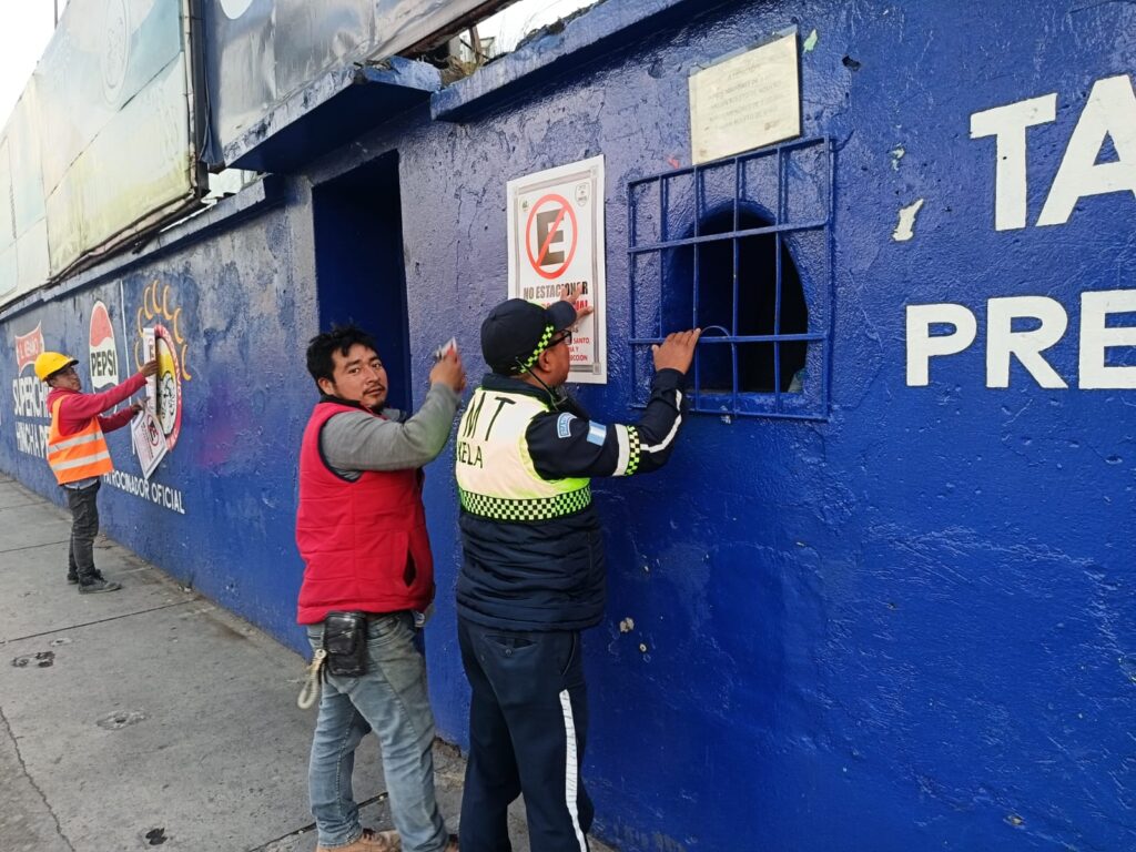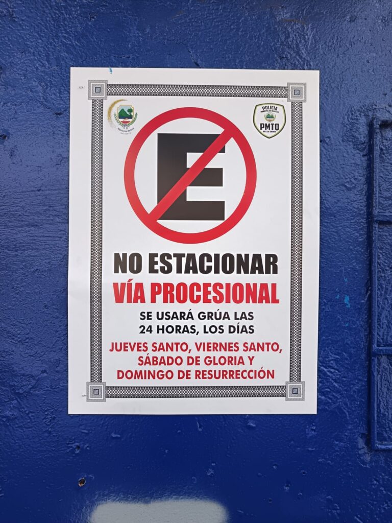 Los agentes colocan los afiches en las áreas donde pasarán los cortejos procesionales y advertir a turistas de estacionarse en esos sectores.