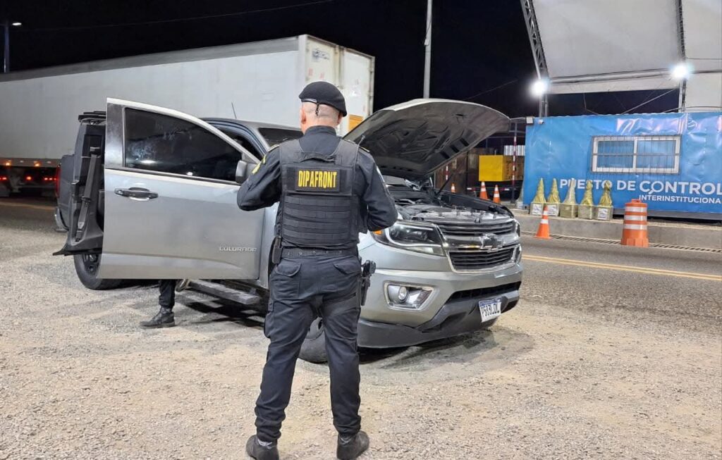En el Puesto de Control Interinstitucional (PCI), en la aldea Vado Hondo, Chiquimula, Guatemala, agentes de la División de Puertos, Aeropuertos y Puestos Fronterizos (Dipafront) de la Policía Nacional Civil (PNC) arrestan a César «N», de 37 años, por coyotaje.
