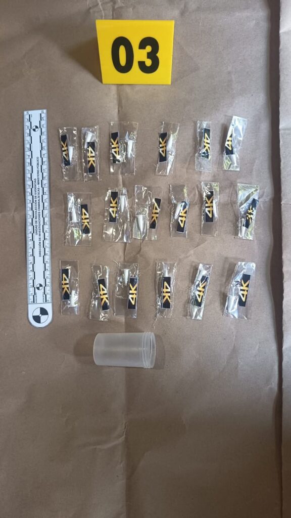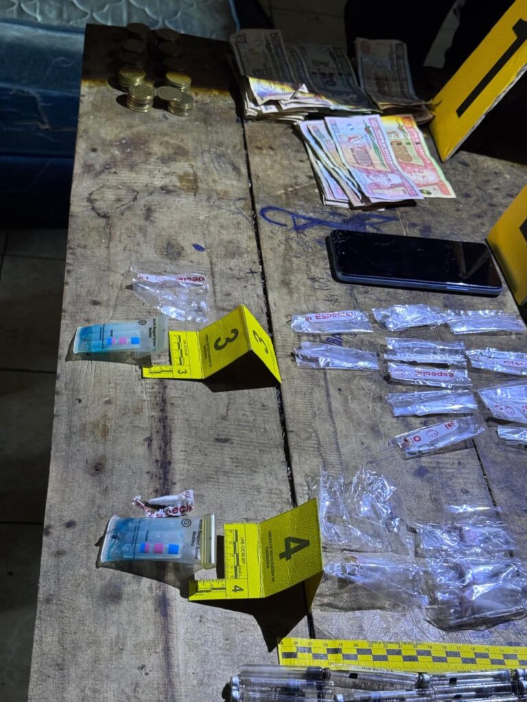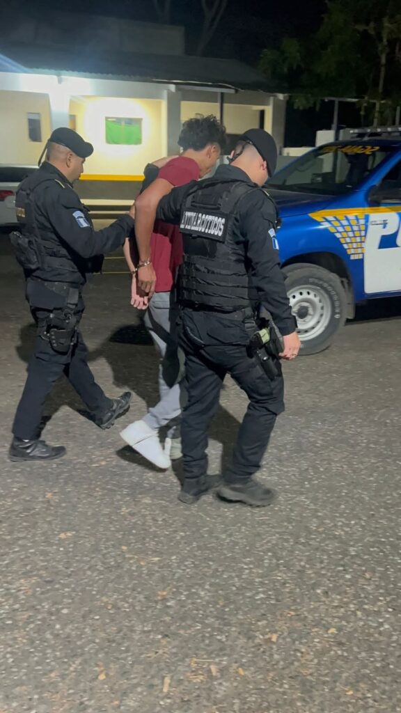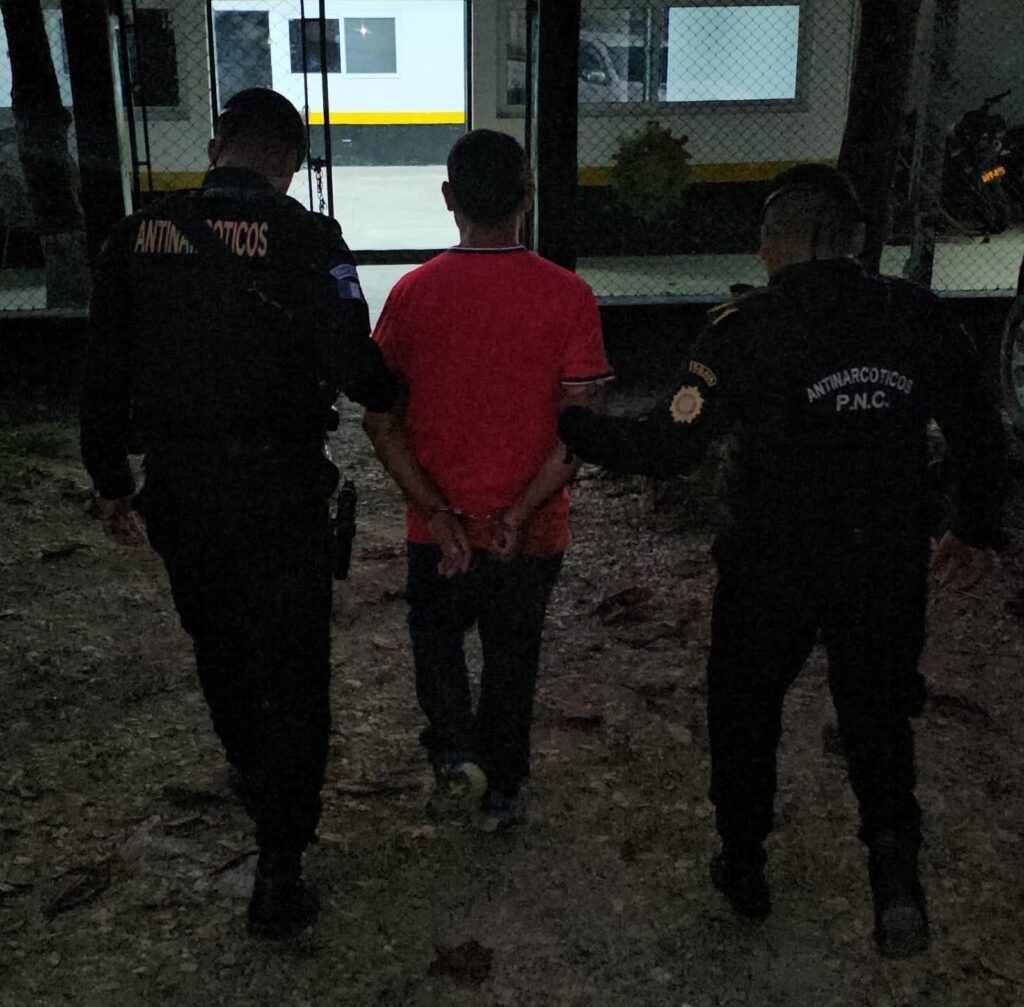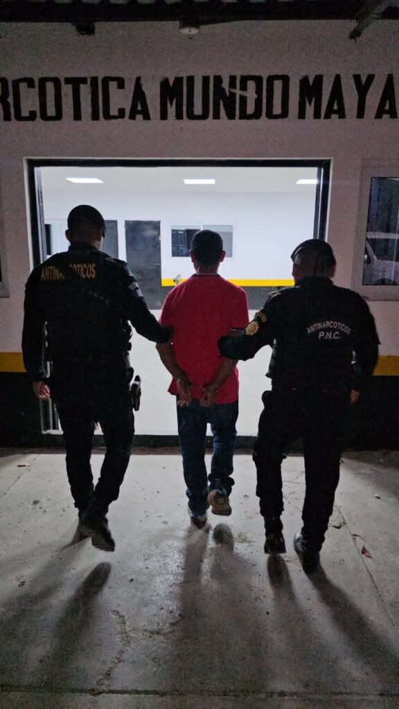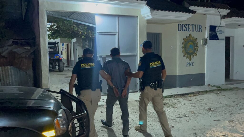 Policías de la División de Seguridad Turística (Disetur) también reporta la captura en Santa Elena, Flores, Petén, de Erick “N”, de 40 años, a quien le incautaron Q1 mil, un teléfono celular, 13 envoltorios con crack y 8 recipientes con cocaína.