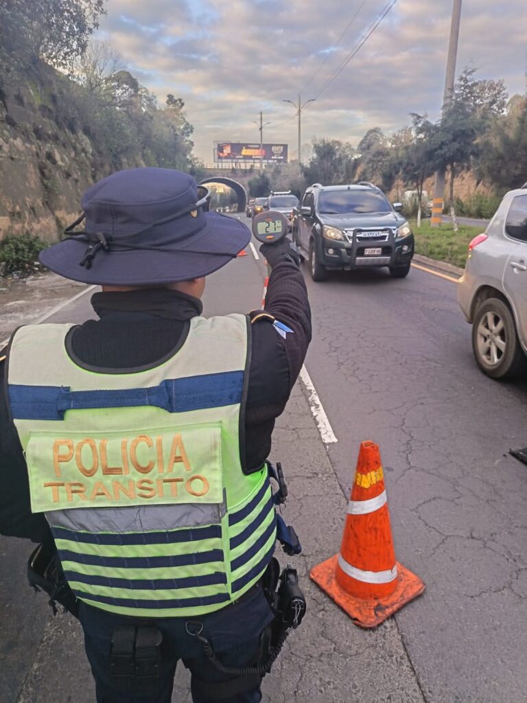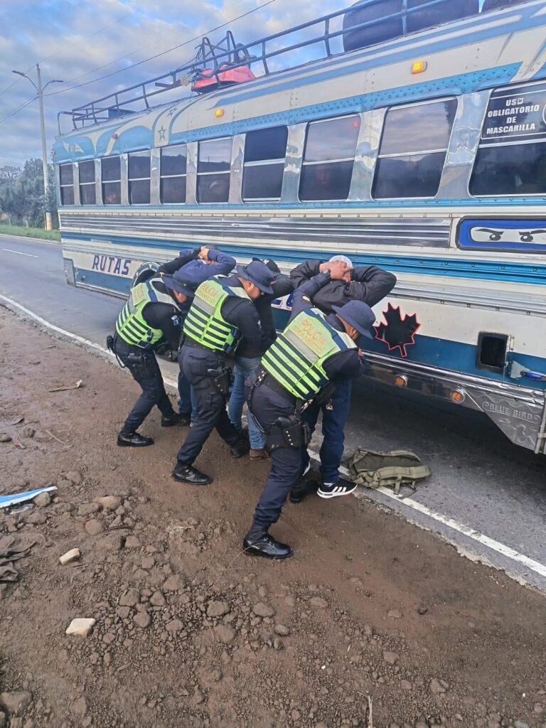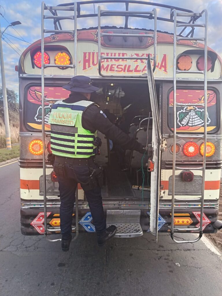 Este lunes, agentes del Departamento del Tránsito de la Policía Nacional Civil (PNC) desarrollan operativo dirigido al transporte colectivo en el kilómetro 193 de la autopista Los Altos, Quetzaltenango.