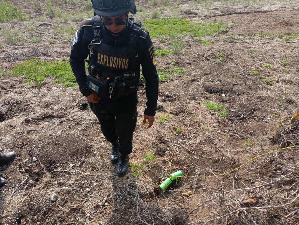 La Policía Nacional Civil (PNC), a través de especialistas de la DIDAE, localizó y destruyó un artefacto explosivo en el sector de Valle Palajunoj, zona 10 de Quetzaltenango, tras un reporte ciudadano.