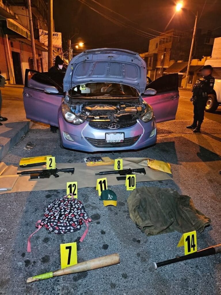 Durante la inspección oficial, las autoridades localizaron dos fusiles, dos bates y otros indicios, los cuales serán fundamentales para fortalecer las investigaciones, incluyendo la obtención de evidencia genética (ADN).