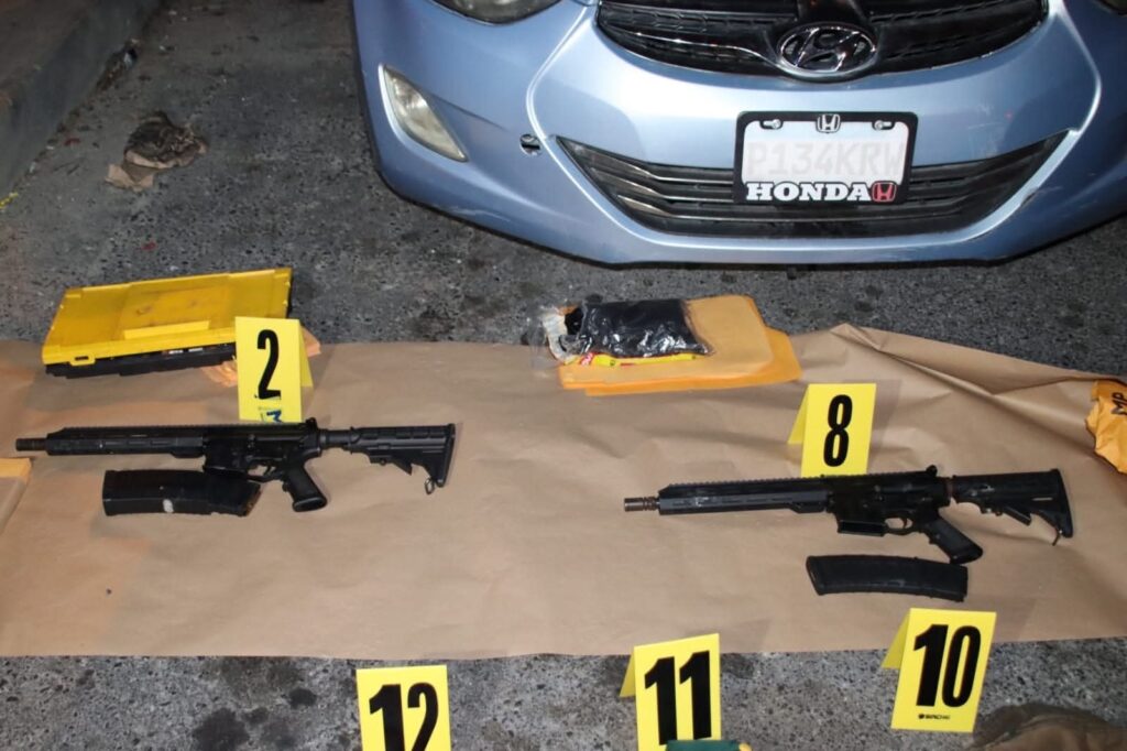 A simple vista, en el interior del vehículo se observaban dos fusiles, por lo que de inmediato se coordinó con el Ministerio Público para realizar la diligencia correspondiente.