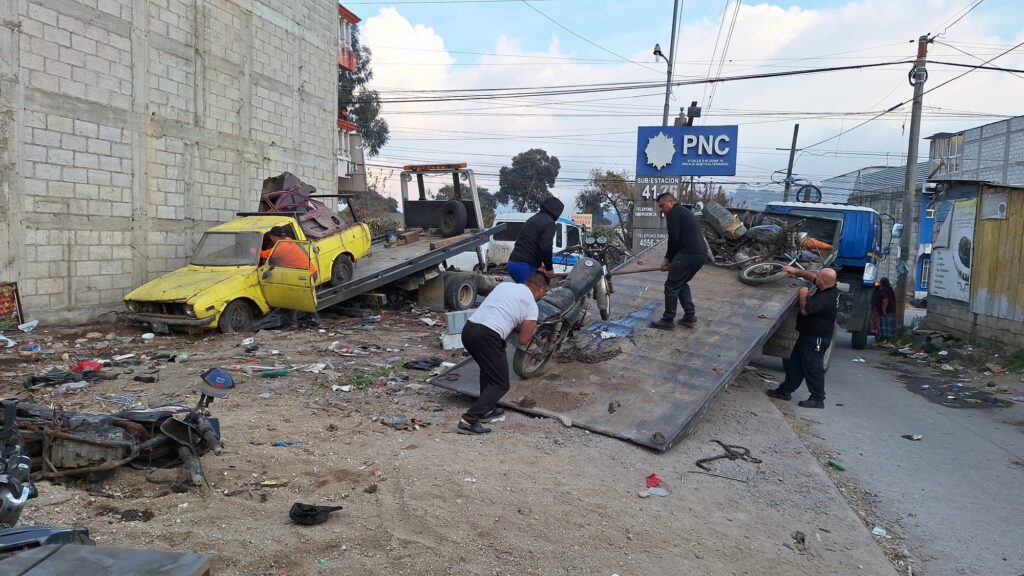 El traslado de los vehículos se realizó con el apoyo de grúas de la Subdirección General de Apoyo y Logística de la PNC, garantizando que el procedimiento se desarrollara de forma segura y conforme a los protocolos establecidos.