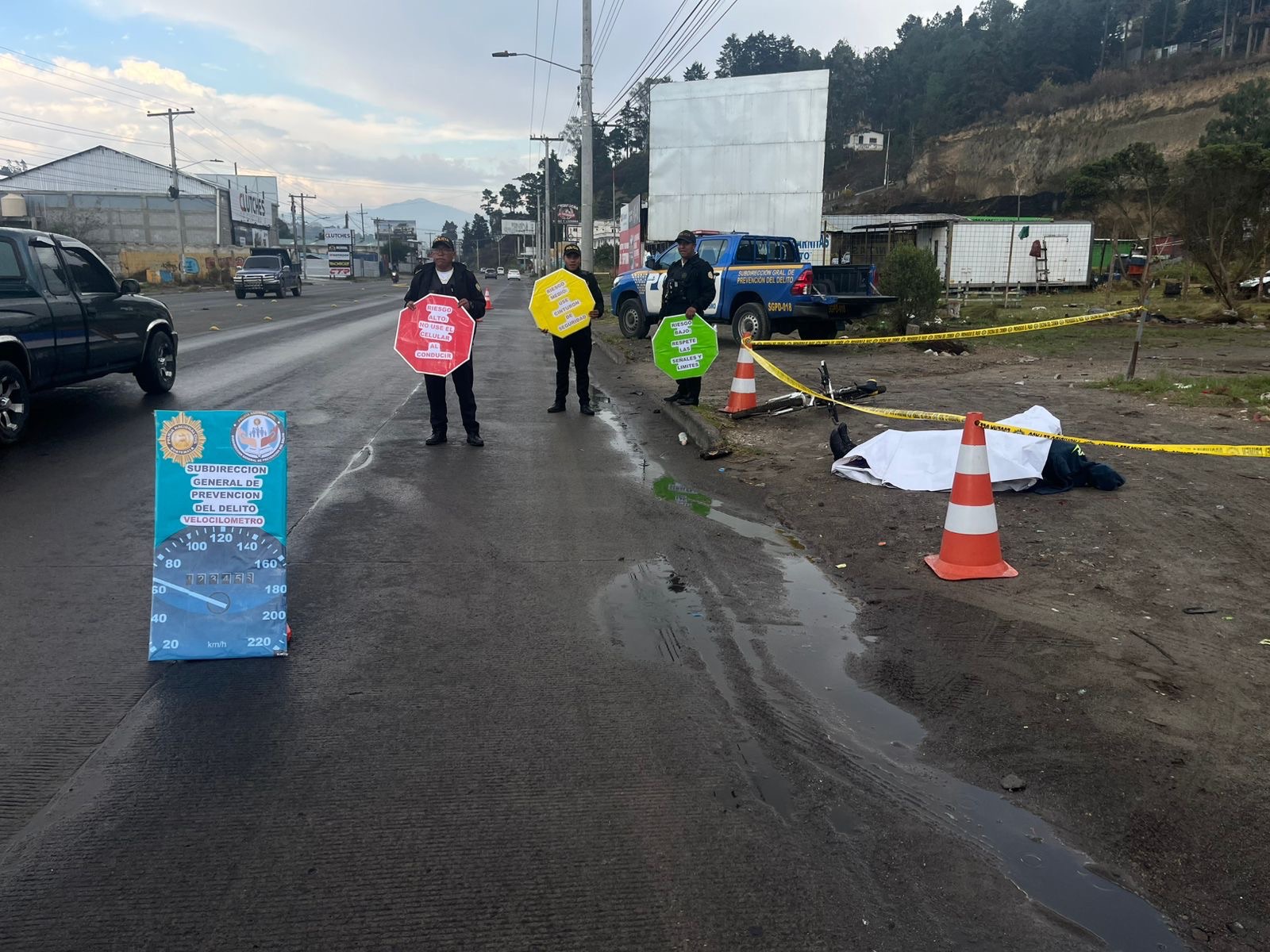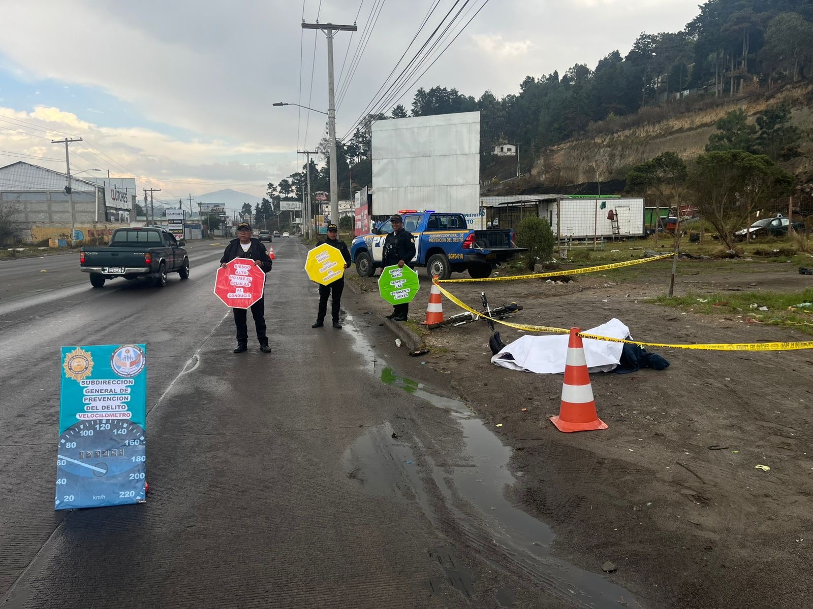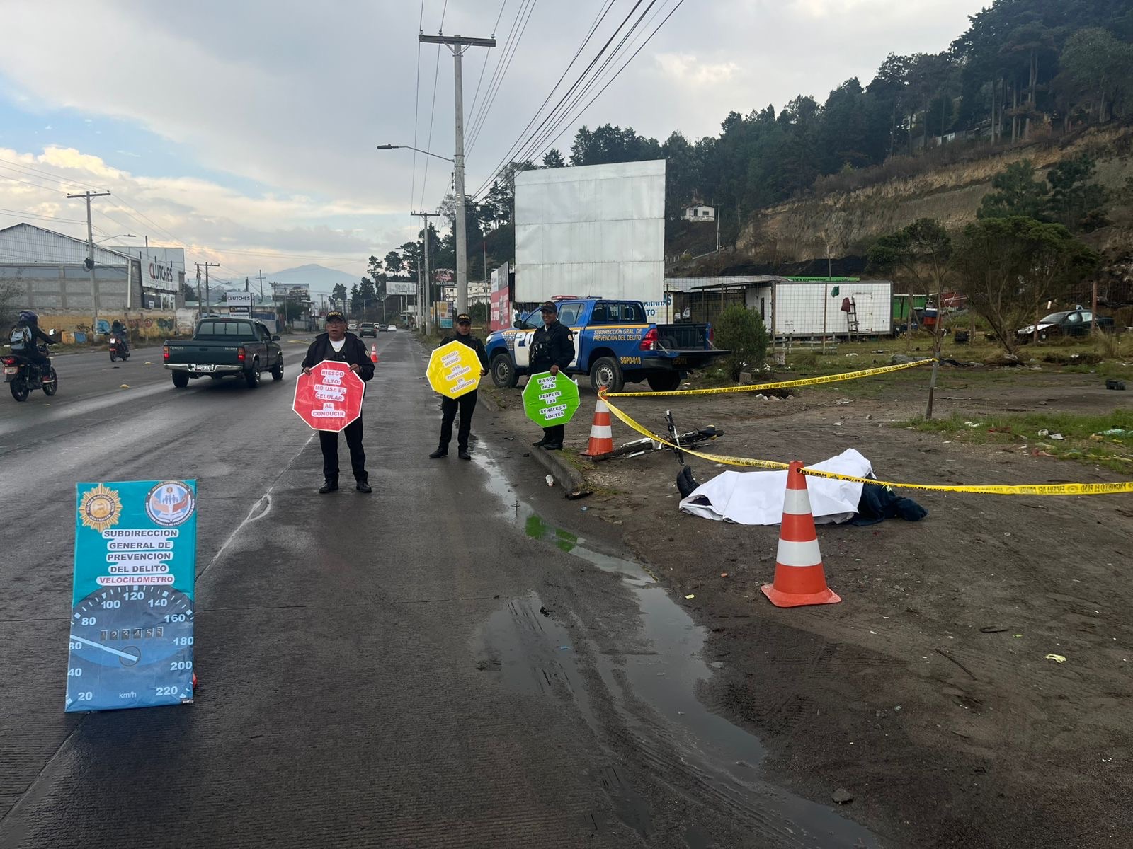 Con el objetivo de sensibilizar y concientizar a conductores de vehículos de dos y cuatro ruedas, la Policía Nacional Civil (PNC), a través de la Subdirección General de Prevención del Delito, llevó a cabo un simulacro de tránsito en la calzada Manuel Lisandro Barillas, zona 5 de Quetzaltenango.