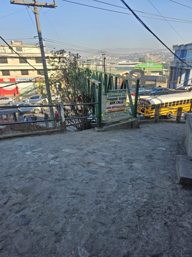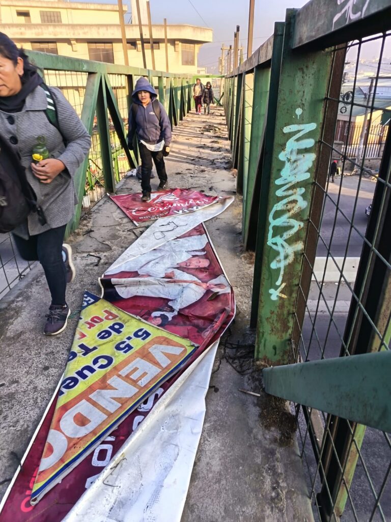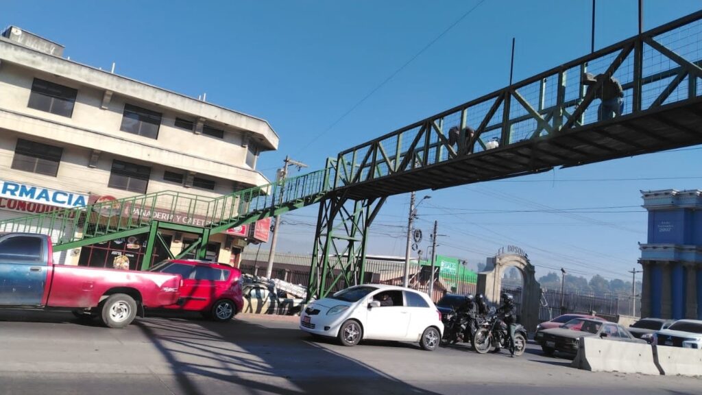 Este jueves, personal municipal desarrolla labores de mantenimiento en la pasarela en la 7ª avenida y 8ª calle, zona 2 de Quetzaltenango, cerca de la rotonda del Monumento a la Marimba.