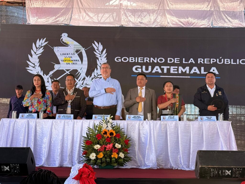 En Santa María Chiquimula, el presidente participó en la firma de una agenda territorial junto a representantes de las 19 aldeas del municipio, con el objetivo de fortalecer la coordinación y el desarrollo local.