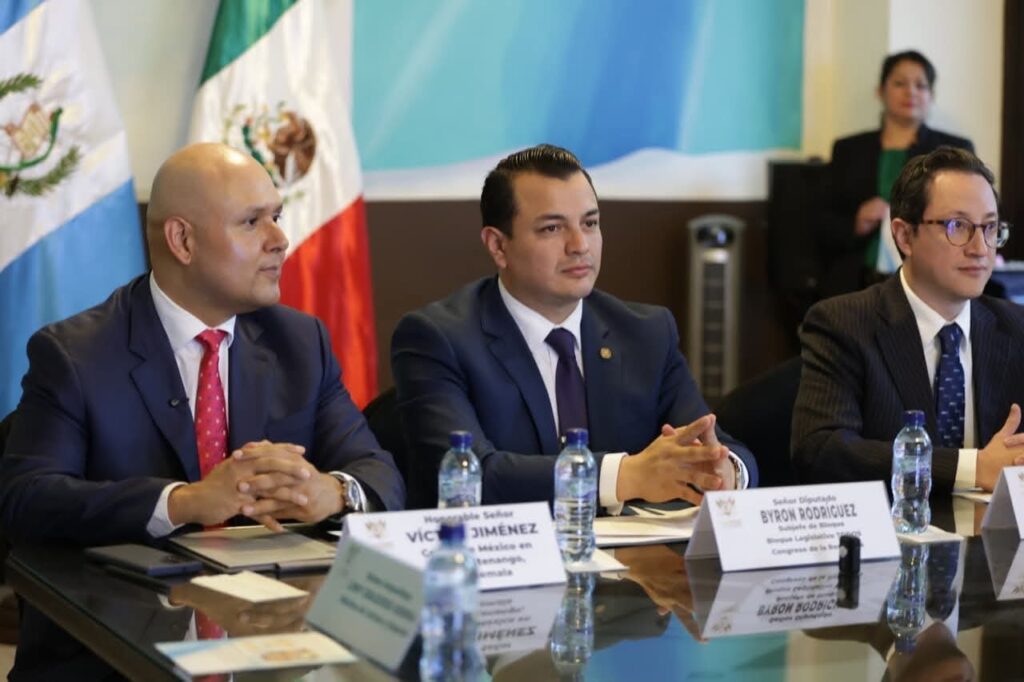 Los diputados Byron Rodríguez y Gustavo Cifuentes realizaron un acto de reconocimiento en el Palacio Legislativo y Casa Larrazábal, donde destacaron la labor de Víctor Manuel Jiménez Segovia y José Luis Alvarado Valenzuela, cónsules de México en Quetzaltenango y Tecún Umán, San Marcos, respectivamente.