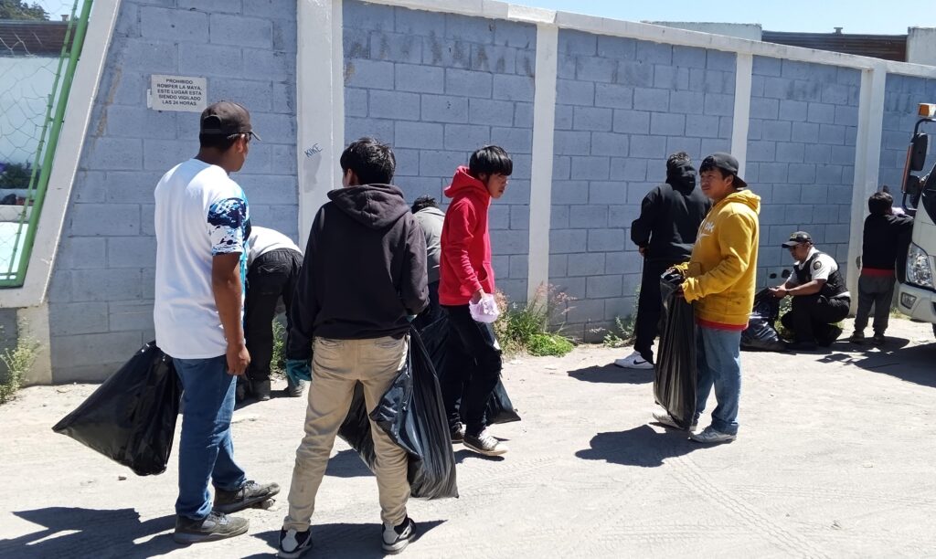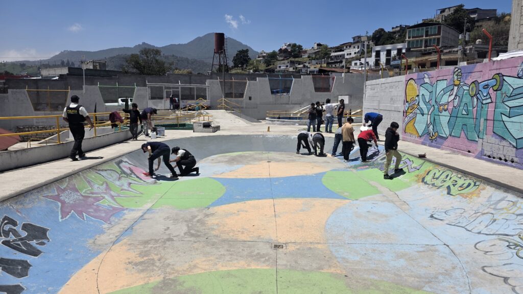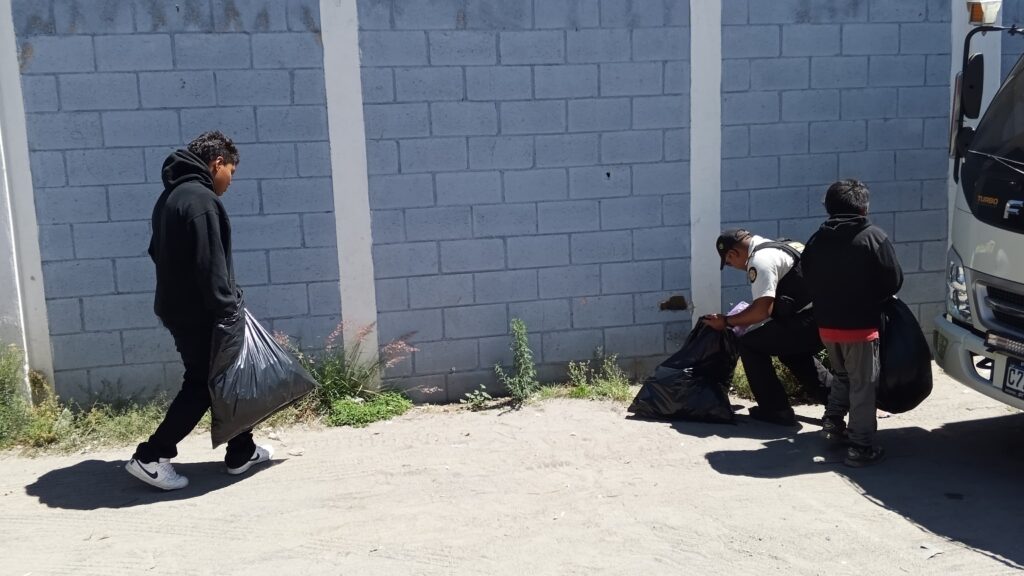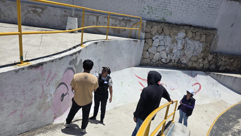 Este martes, agentes de la Policía Nacional Civil (PNC) y personal del Bienestar Social recuperan espacios en el Parque Extremo Tanque El Soldado, zona 2 de Quetzaltenango.