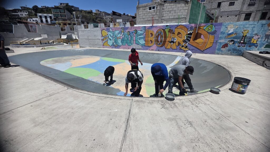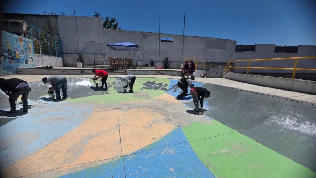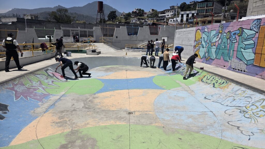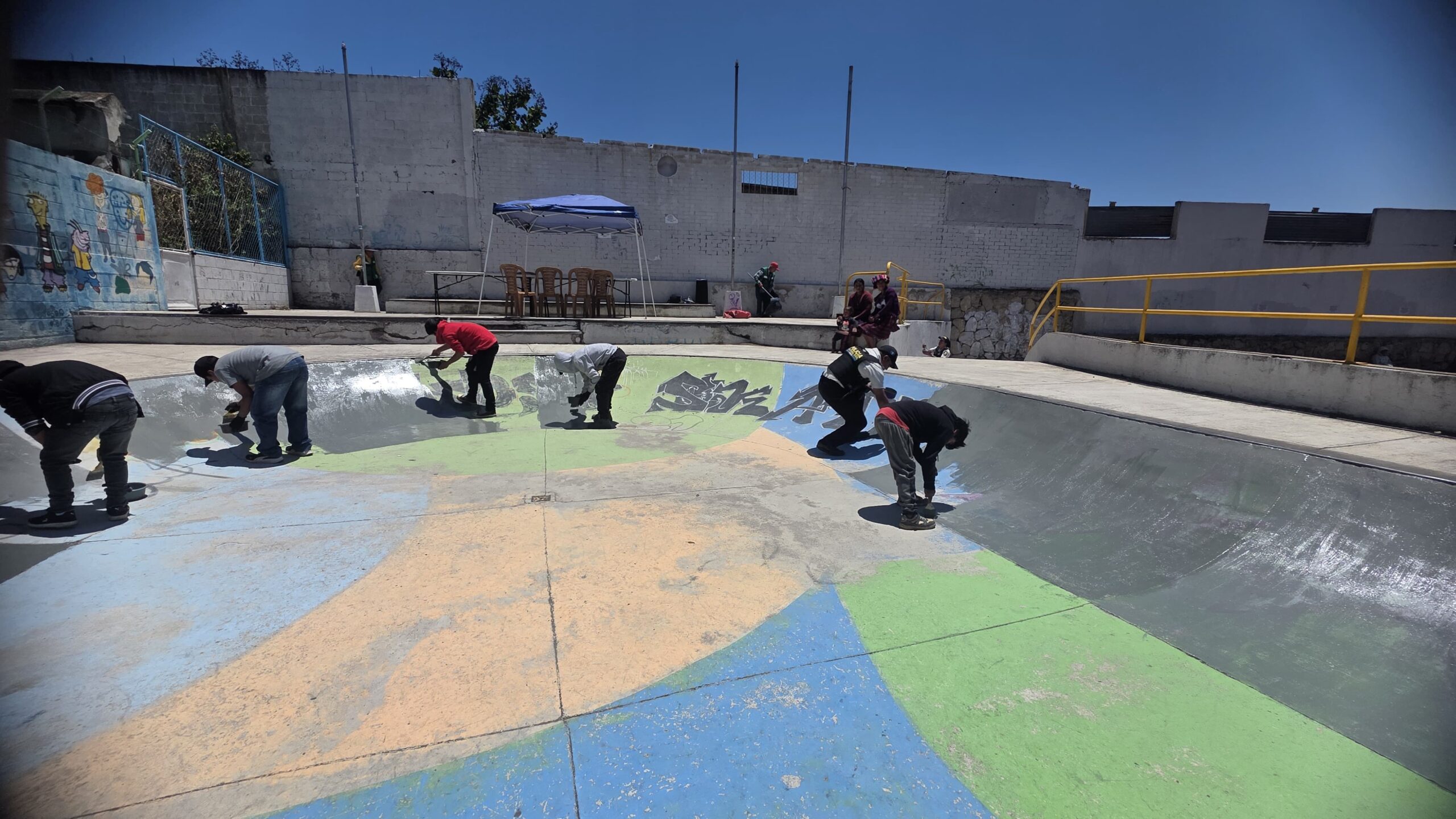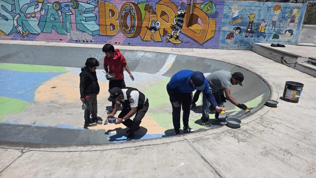 Las instituciones pintan una pared, la cual tenía grafitis referentes a pandilla la cual fue hecha por asociales, quienes amedrentan a la sociedad.