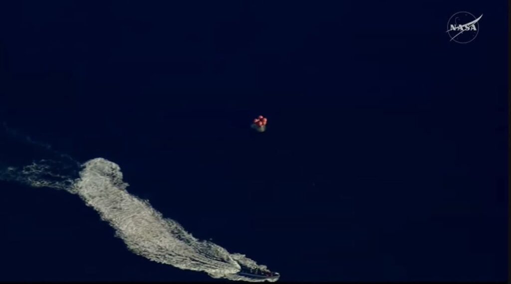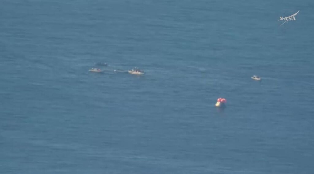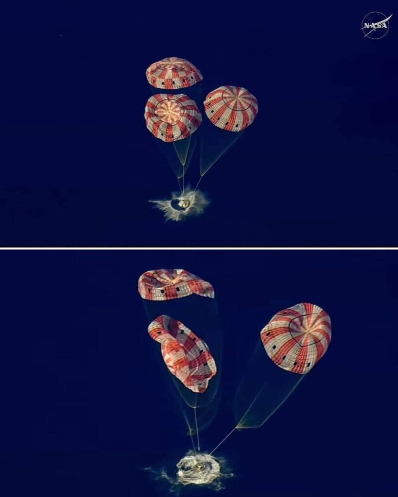 El Regreso: La cápsula reingresó a la atmósfera terrestre a una velocidad cercana a los 40,000 km/h, soportando temperaturas de hasta 2,800°C gracias a su escudo térmico de última generación.