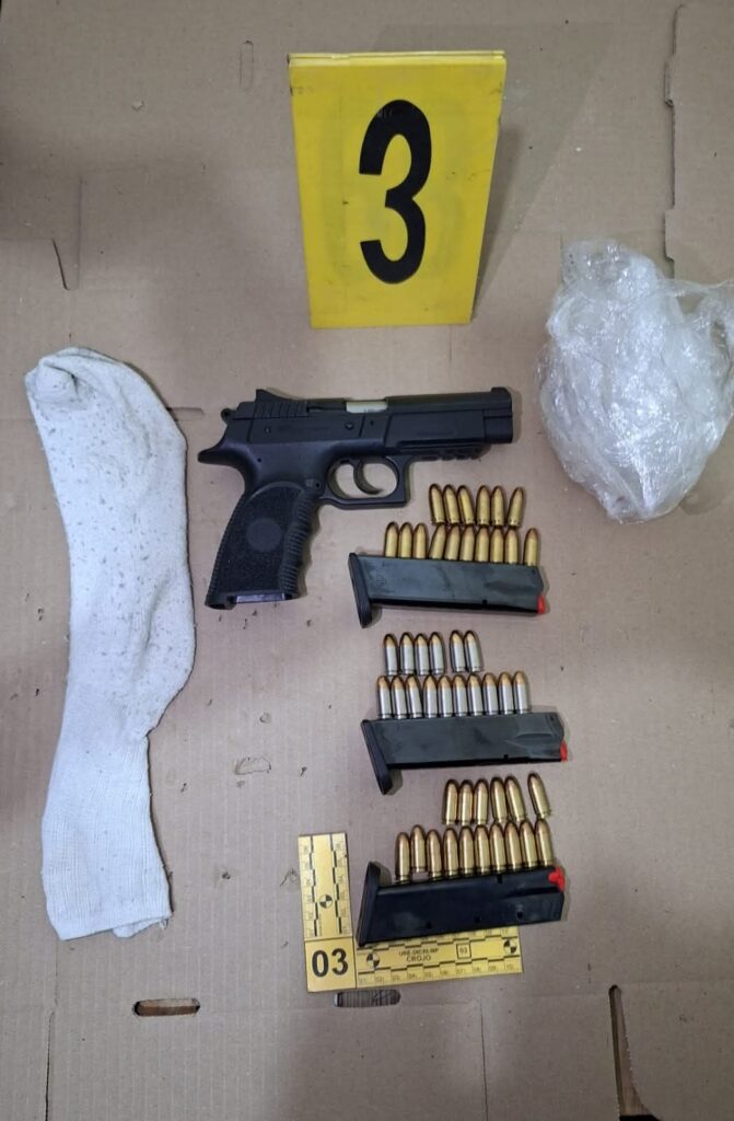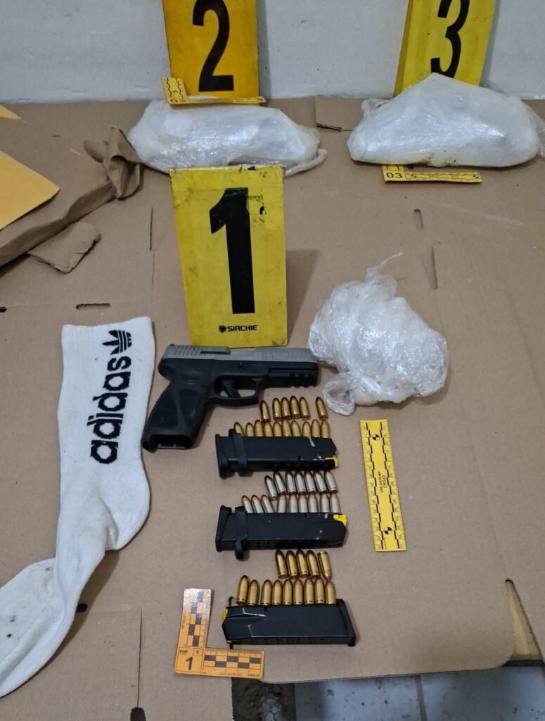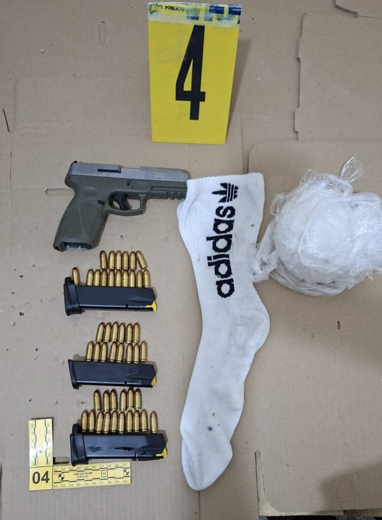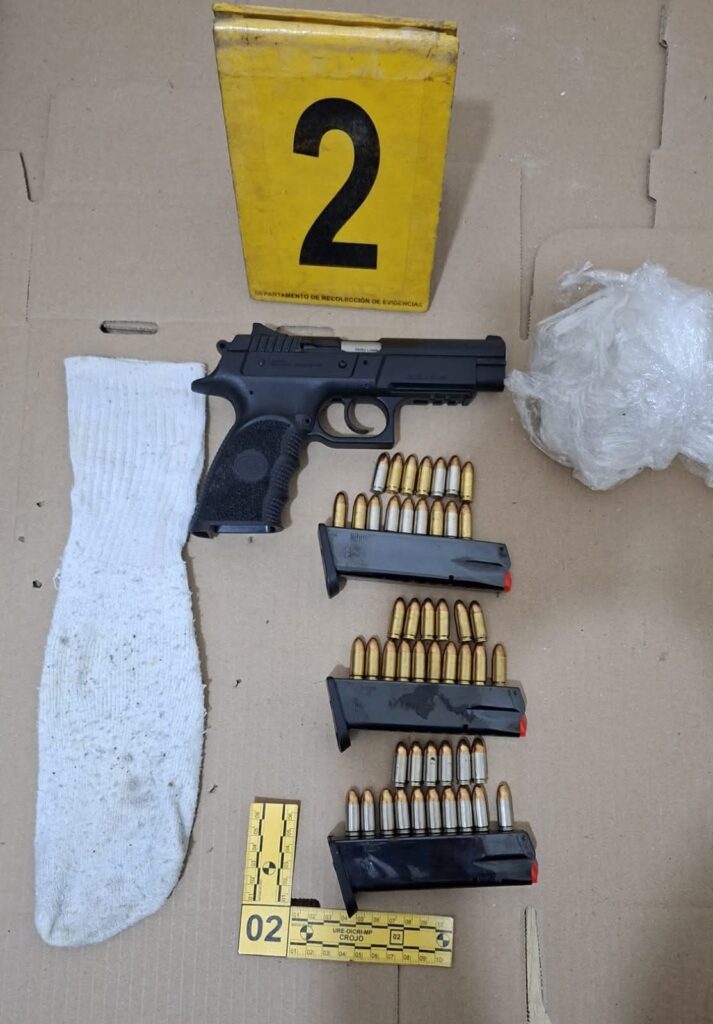 Los policías descubrieron, en un agujero en el piso de uno de los dormitorios, cuatro pistolas envueltas en nailon, 12 tolvas y 188 municiones. Además incautaron dos cajas con 94 municiones adicionales y una tarjeta SIM.