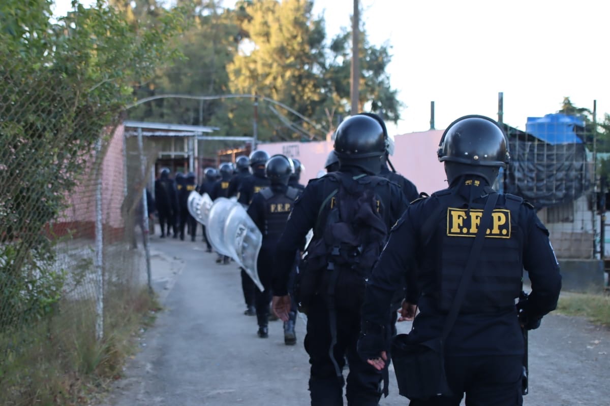 La Policía Nacional Civil (PNC) brindó seguridad perimetral a personal del Sistema Penitenciario durante una requisa realizada en la Granja Modelo de Rehabilitación Pavón, ubicada en Fraijanes, como parte de las acciones para fortalecer el control y la seguridad dentro del centro carcelario.