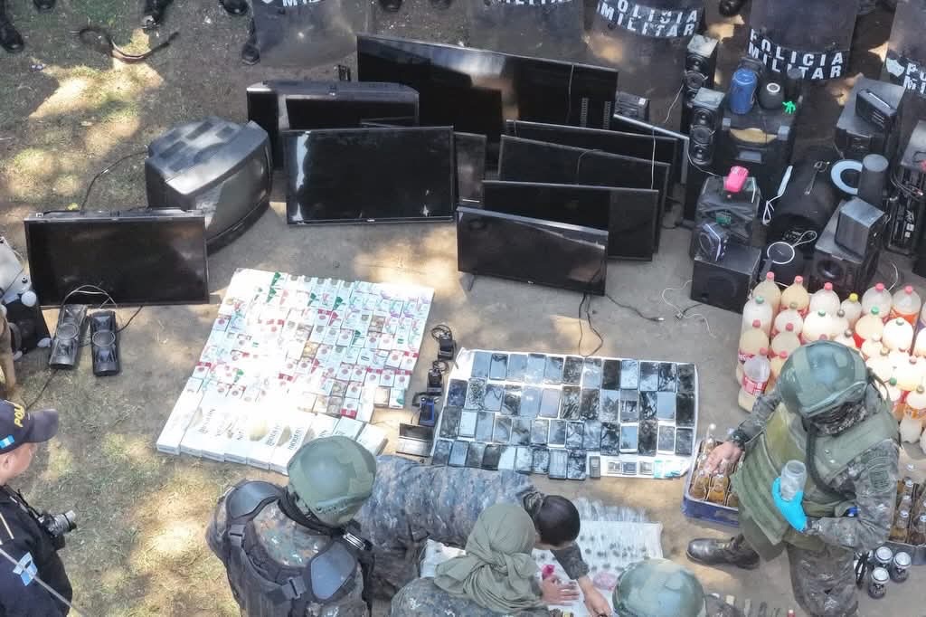 Durante la intervención se localizaron diversos objetos y sustancias ilícitas, entre ellos 49 teléfonos móviles, 228 cajetillas de cigarrillos, 102 bocinas y 4 auriculares, 11 televisores y 3 ventiladores, así como 65 botellas de licor clandestino y 7 latas de cerveza. También fue identificado un cuarto utilizado para almacenamiento de licor, además de 15 objetos punzocortantes, 3 radiotransmisores tipo Motorola con sus cargadores, 18 cargadores de teléfono y 4 baterías, junto a otros dispositivos electrónicos como un UPS, 3 tarjetas SD, 4 USB y una tarjeta SIM.