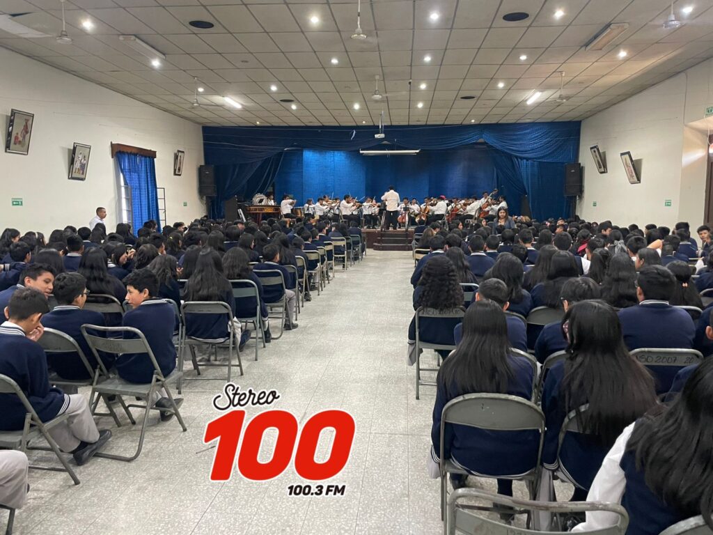 Hoy, en el auditorium del Instituto Normal para Señoritas de Occidente (INSO), zona 1 de Quetzaltenango, alumnos de primero básico del Instituto Nacional Experimental Gabriel Arriola Porres (INEGAP) disfrutan del concierto con la Sinfónica Regional de Occidente.