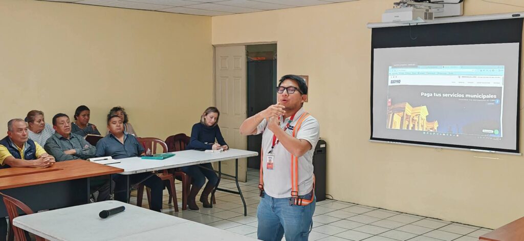 Integrantes de Consejos Comunitarios de Desarrollo (Cocode) se reúnen con autoridades de la Empresa Eléctrica Municipal de Quetzaltenango (EEMQ) para reparación de lámparas públicas.
