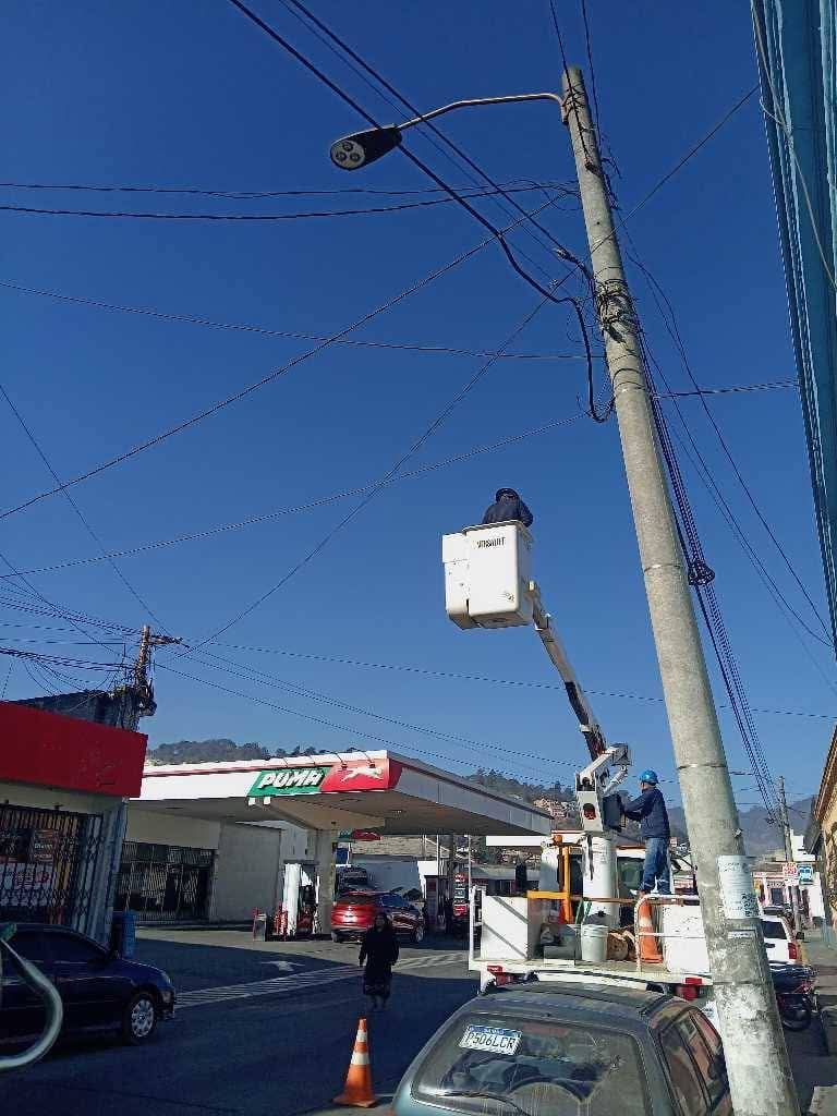 Este domingo, desde temprano, técnicos de alumbrado público de la Empresa Eléctrica Municipal de Quetzaltenango (EEMQ) recorren diferentes puntos para reparar y cambiar lámparas, con la intención de fortalecer la iluminación y colaborar con la seguridad citadina.