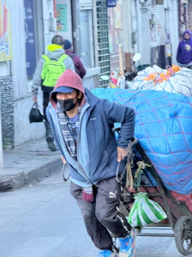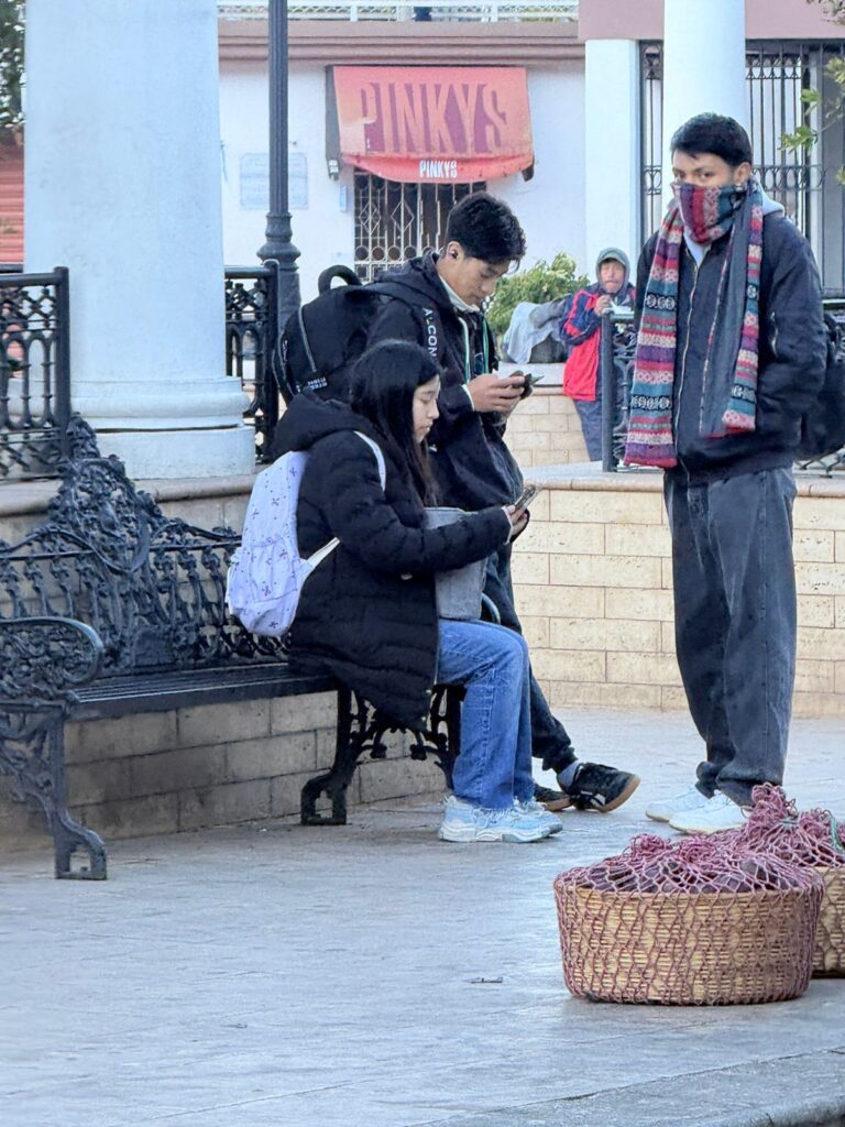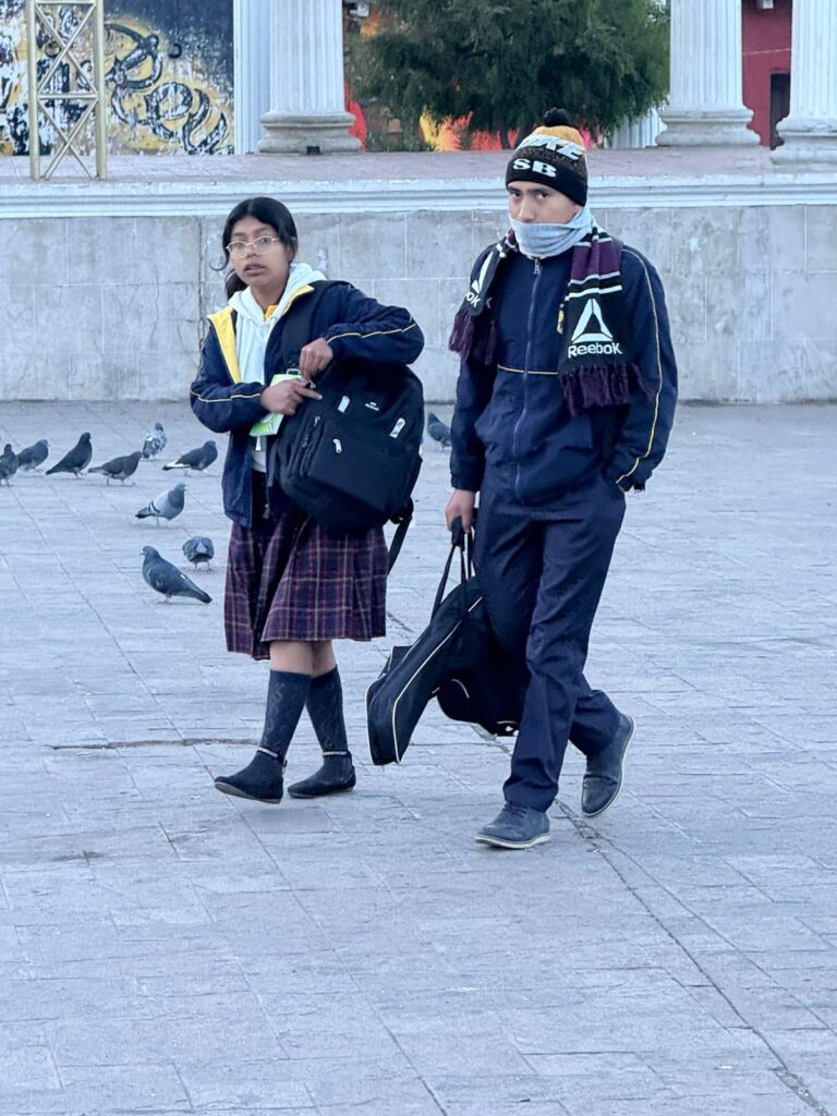 Desde muy temprano, pobladores salieron a las calles bien abrigados, utilizando gorros, bufandas, chumpas y guantes para protegerse de las bajas temperaturas que se han intensificado en la región.