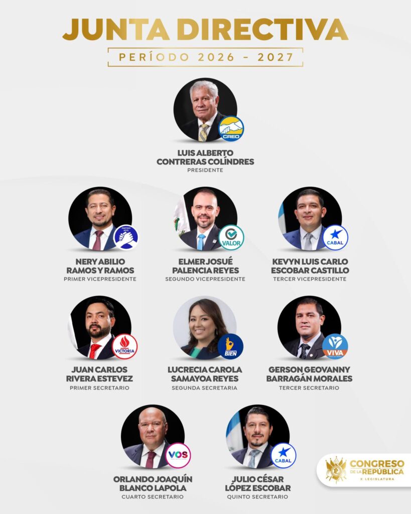 Este miércoles 14 de enero de 2026, los integrantes de la nueva Junta Directiva del Congreso de la República de Guatemala prestaron juramento y asumieron oficialmente sus cargos para el período legislativo 2026-2027, en cumplimiento de lo establecido en la Ley Orgánica del Organismo Legislativo.