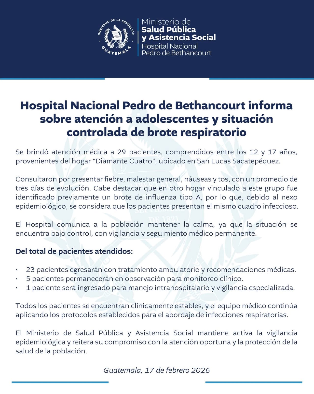 De manera preliminar las autoridades del centro asistencial informaron que los pacientes presentan síntomas compatibles con influenza tipo A, según la evaluación médica inicial realizada al momento de su ingreso.