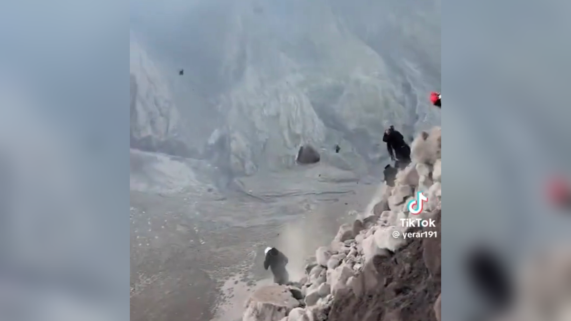 Videos difundidos en redes sociales muestran el momento en que las personas descienden apresuradamente por el terreno rocoso y fangoso, registrándose caídas y resbalones mientras intentaban alejarse del área.
