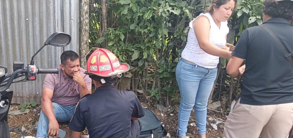 Al llegar los socorristas atienden a Yimi Cardona, de 38 años, quien presenta trauma de cráneo, golpes y erosiones.