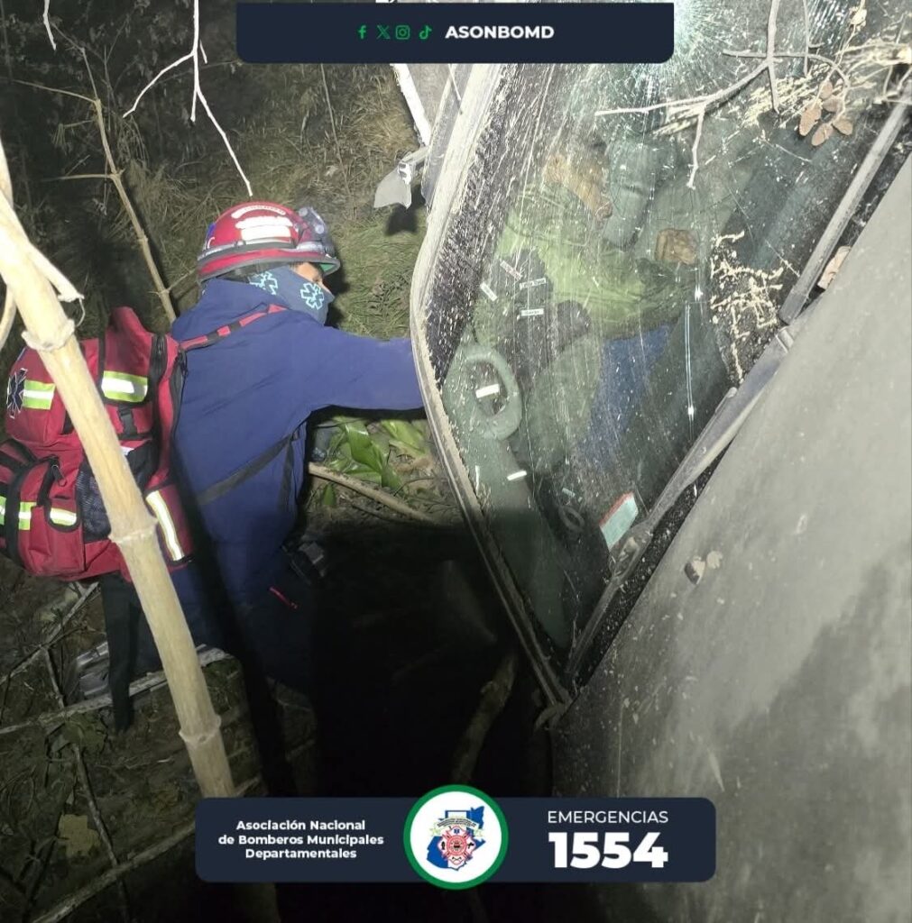 Un vehículo cayó a una hondonada en el kilómetro 188 de la ruta que conduce de Cuatro Caminos hacia San Francisco El Alto, en el departamento de Totonicapán.