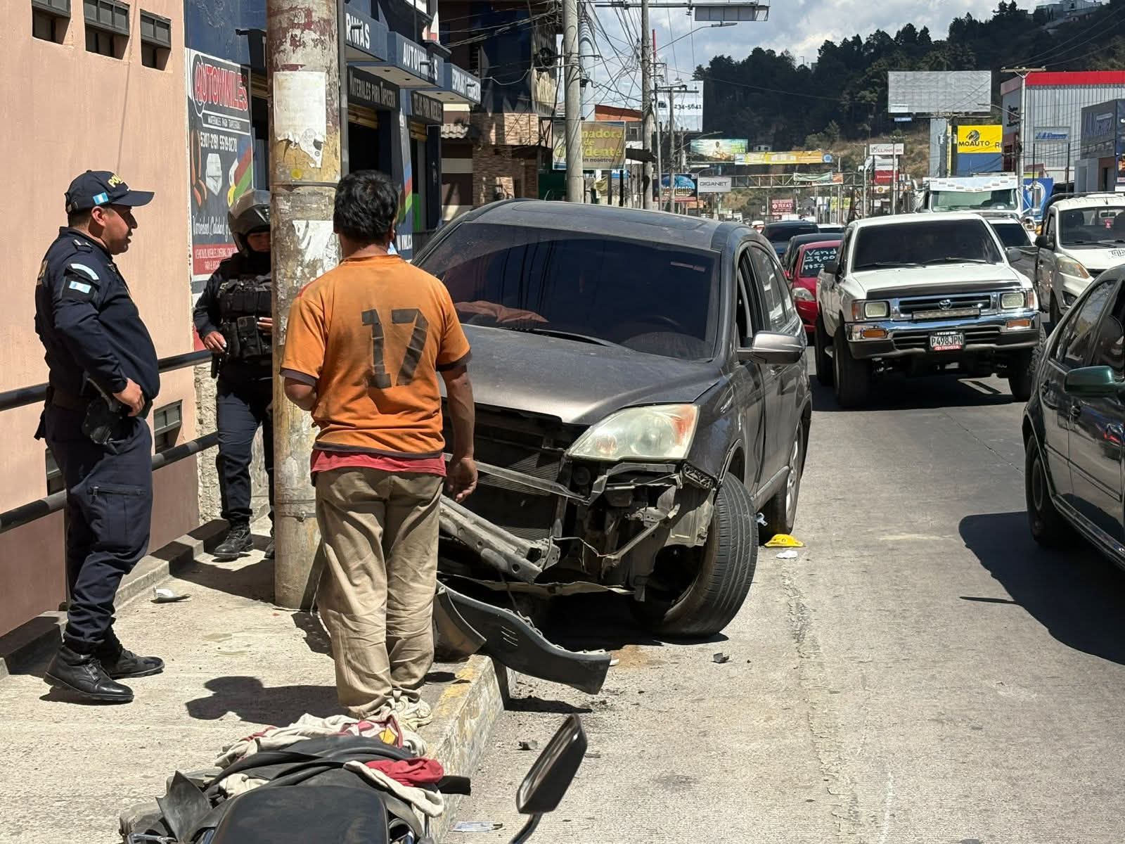 Este jueves un vehículo (camionetilla) choca contra motorista y luego colisiona contra un poste en la calzada Manuel Lisandro Barillas, zona 5 de Quetzaltenango.
