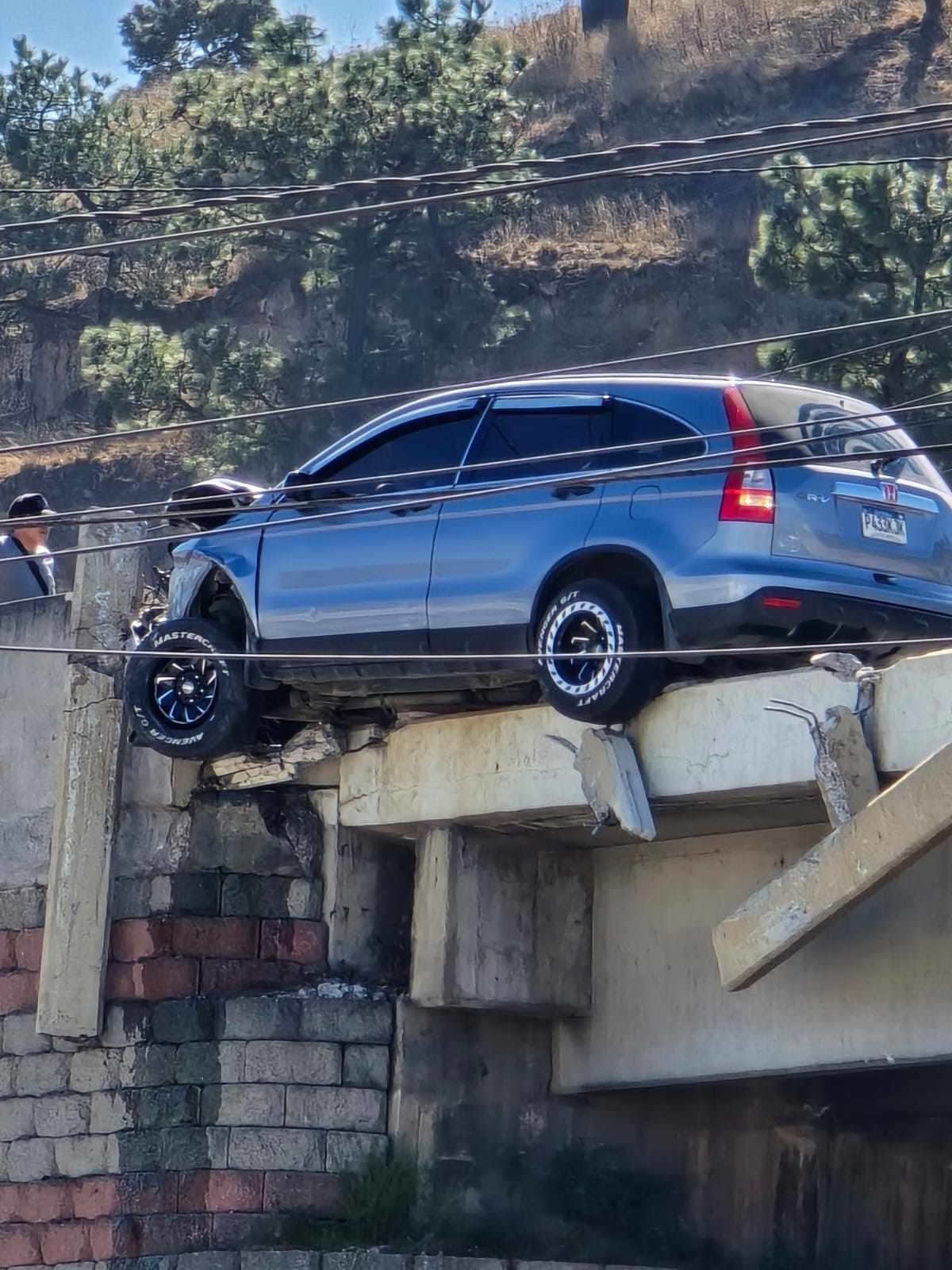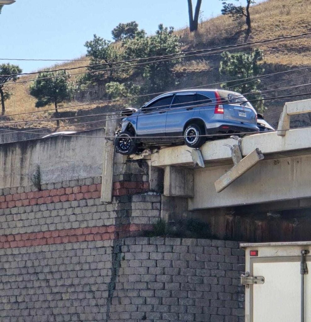 Este jueves un vehículo, por causas que se desconocen, se empotró en el paso a desnivel en el ingreso a Salcajá, Quetzaltenango.