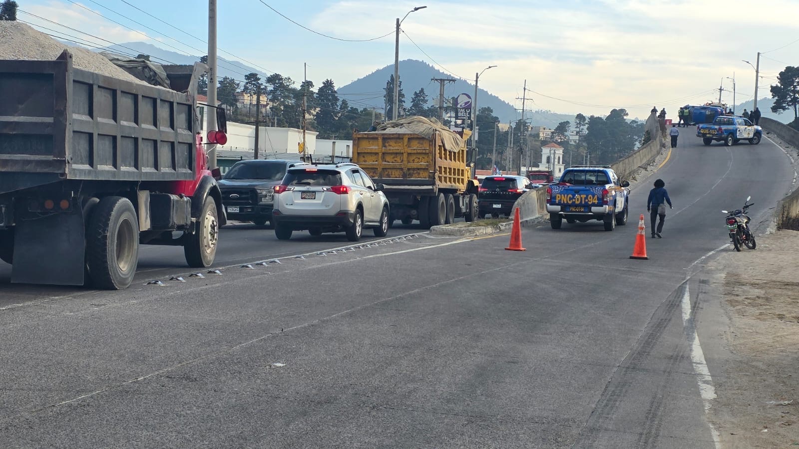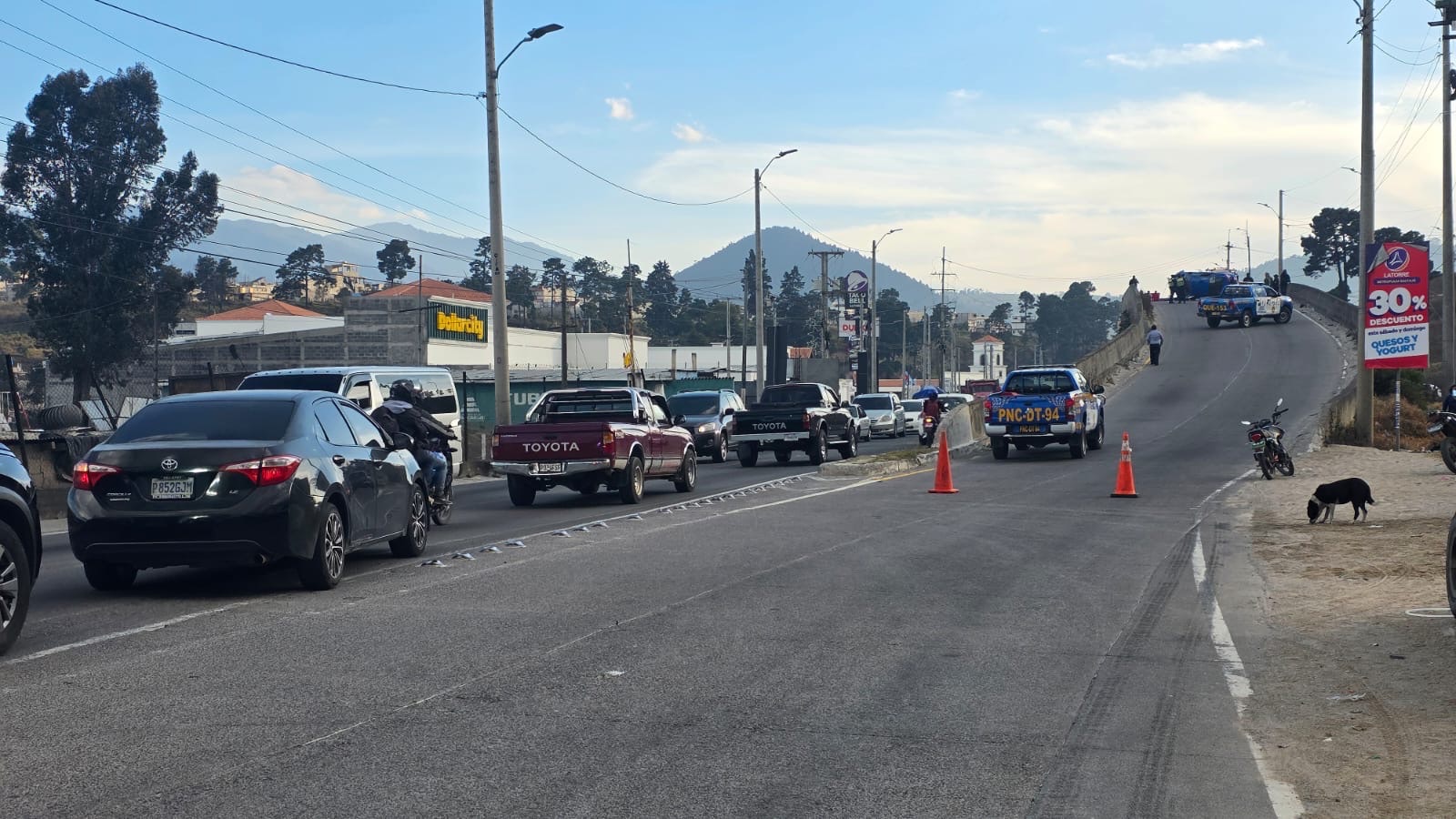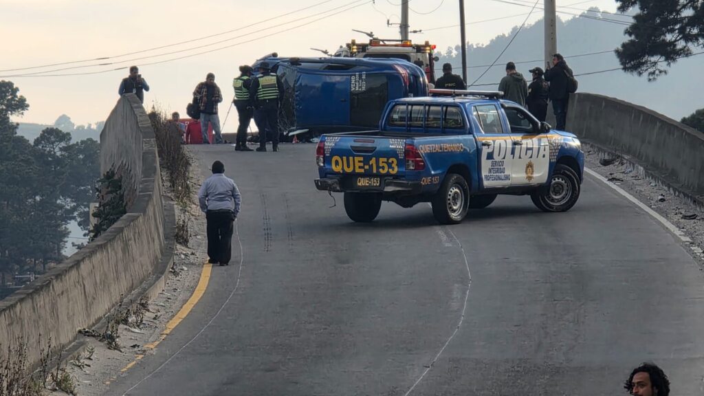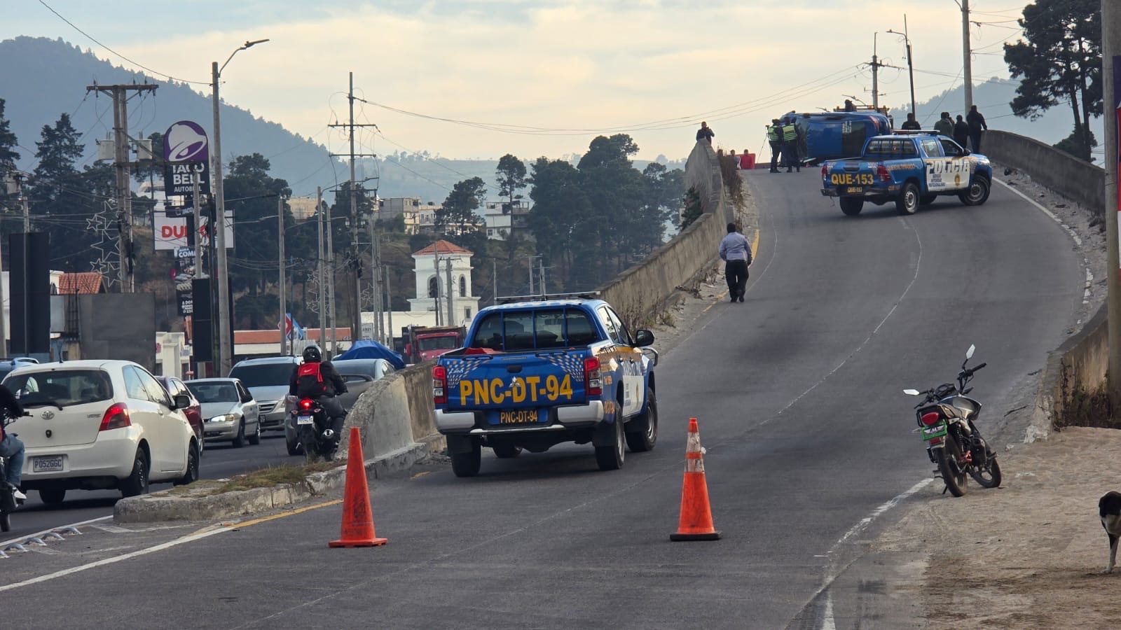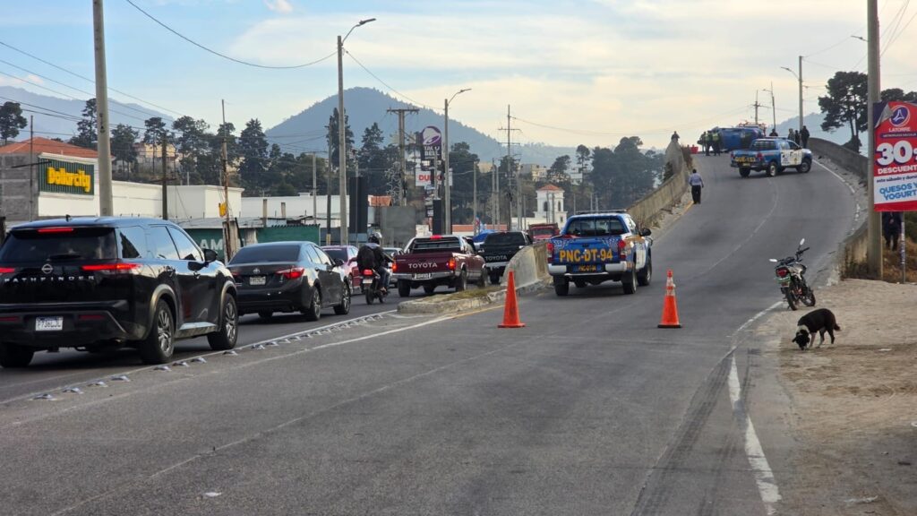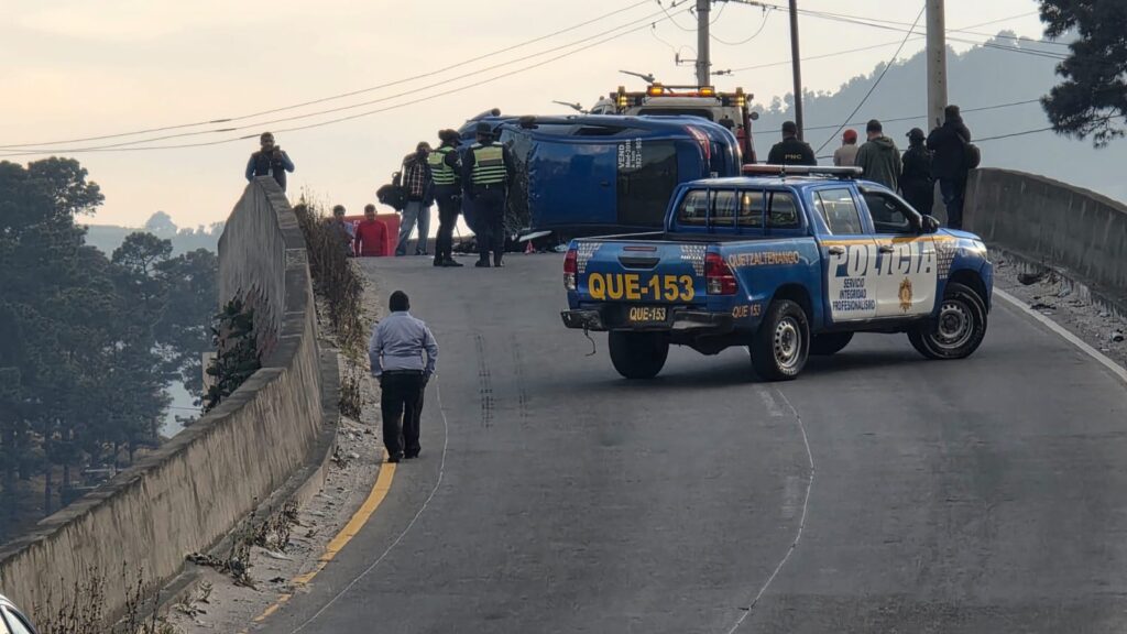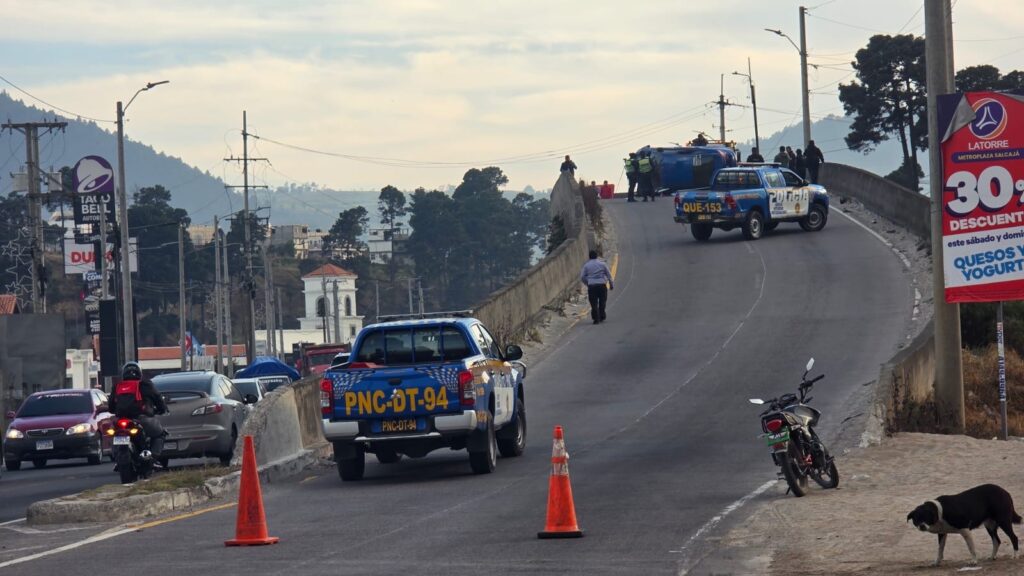 Un accidente de tránsito se registró en el paso a desnivel de Salcajá, Quetzaltenango, donde un vehículo volcó sobre el puente, generando complicaciones en la circulación vehicular del sector.